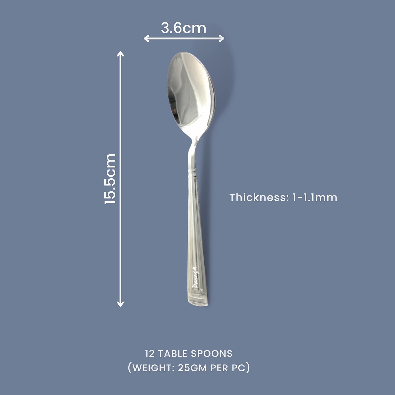 12 Pcs Stainless Steel Dinner Spoon Set | 15.5 cm Table Spoons Silver