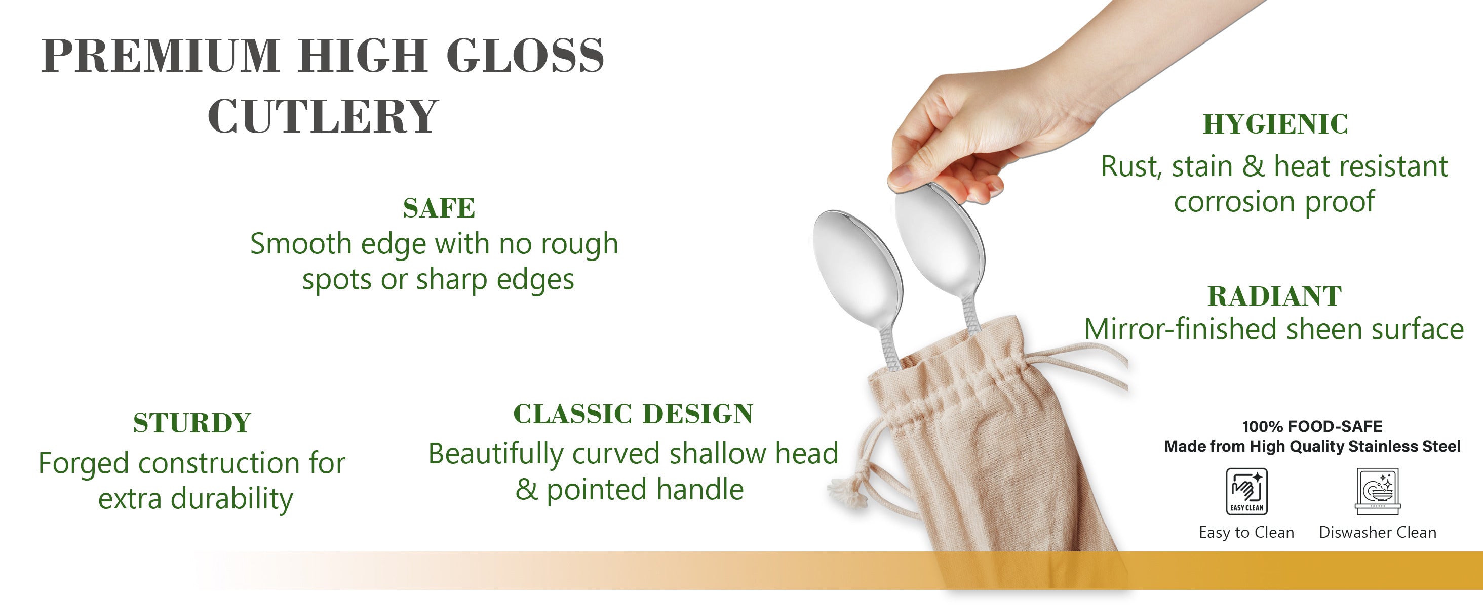- HIGH QUALITY FINISH: Each fork and spoon set is crafted with a top-notch and high grade quality. The cutlery set's smooth edges make it safe to use and balanced weight makes it easy to handle