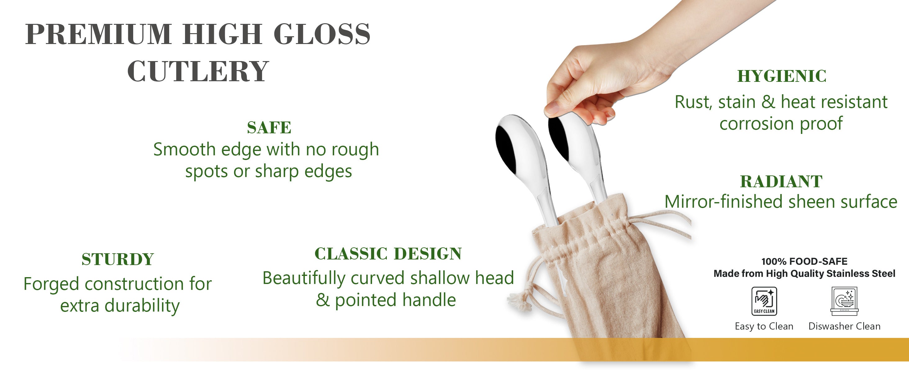 - ➤CARE INSTRUCTIONS-: Thoroughly clean the cutlery. Avoid using abrasive scrubbers or brushes, as these can scratch the finish of your stainless steel. A soft dishcloth or sponge, however, is fine.