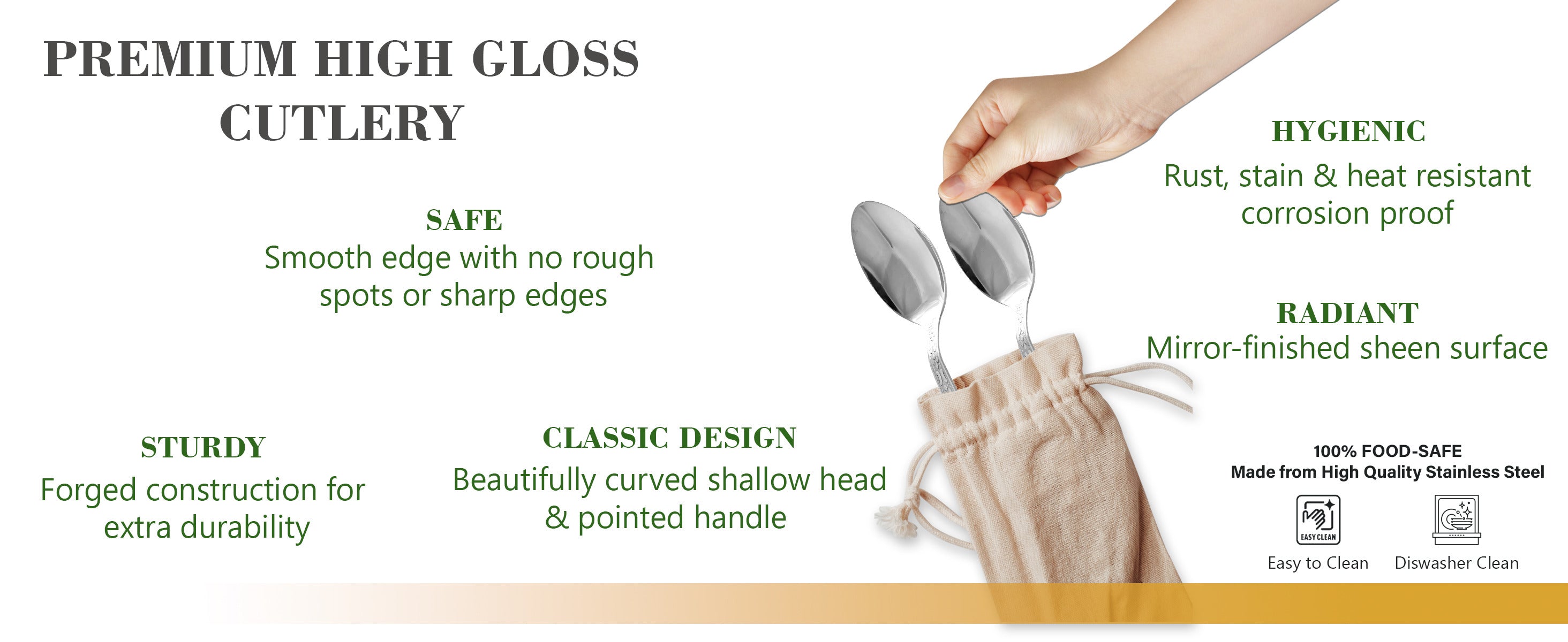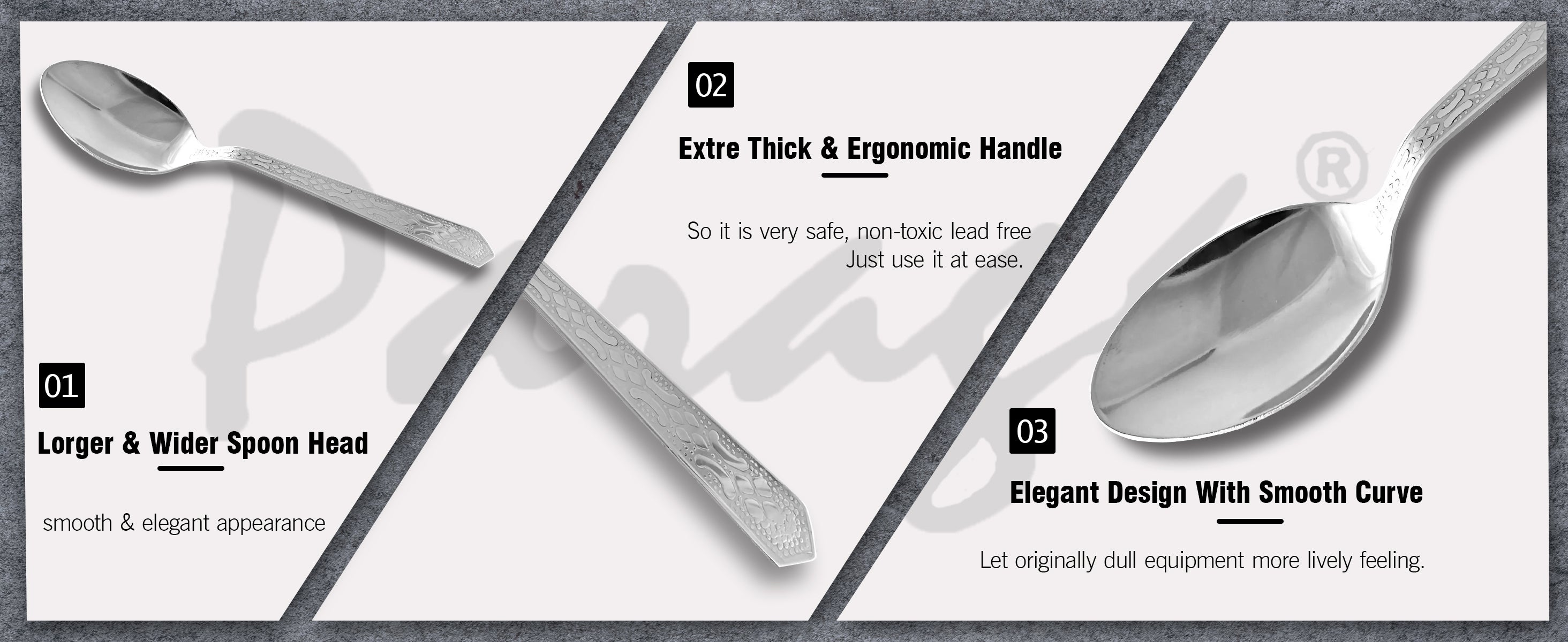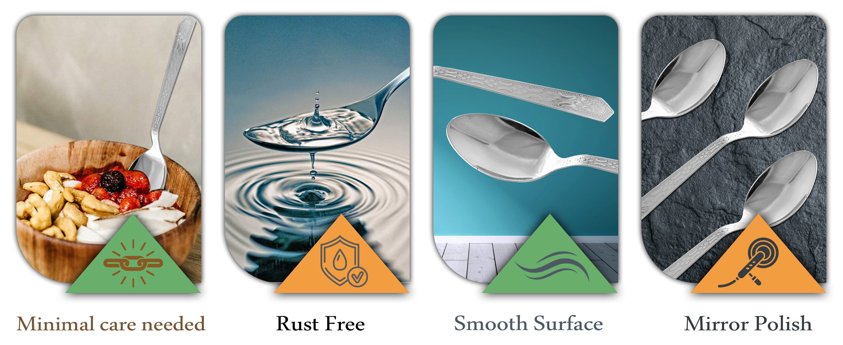 Make meals an elegant affair with well-designed, 100% food-grade stainless steel cutlery. Add a touch of design to the table with practical, well-designed cutlery. These pieces have thick stems for durability, and soft-curved edges for safety, style, and functionality. Our ranges will suit both basic and formal table settings. Each piece in the Parag Cutlery Set has delicate and simple design elements on them that will never go out of style no matter how often you use them. Moreover, these stylish pieces can be used every day as they are designed with thick stems for durability. Its smooth edges also ensure safety.