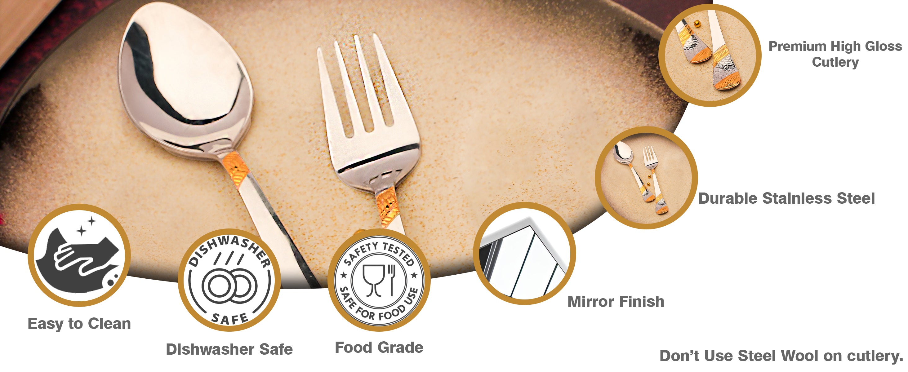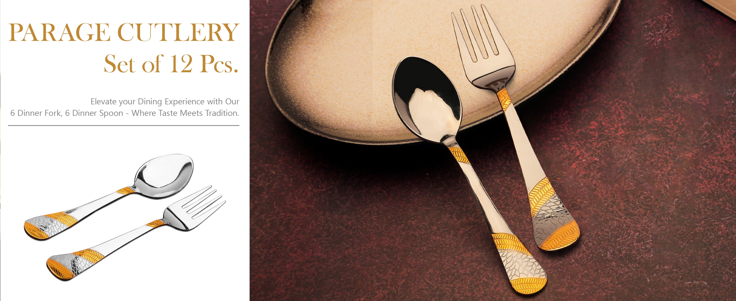 Elevate your dining experience with this 12-piece cutlery set crafted from stainless steel and plated with 24k gold. Each 16cm spoon and fork blends durability with elegant design, offering a refined look that complements any table setting. This set combines practicality with luxury, ensuring long-lasting use while adding a sophisticated touch to everyday meals or special occasions.