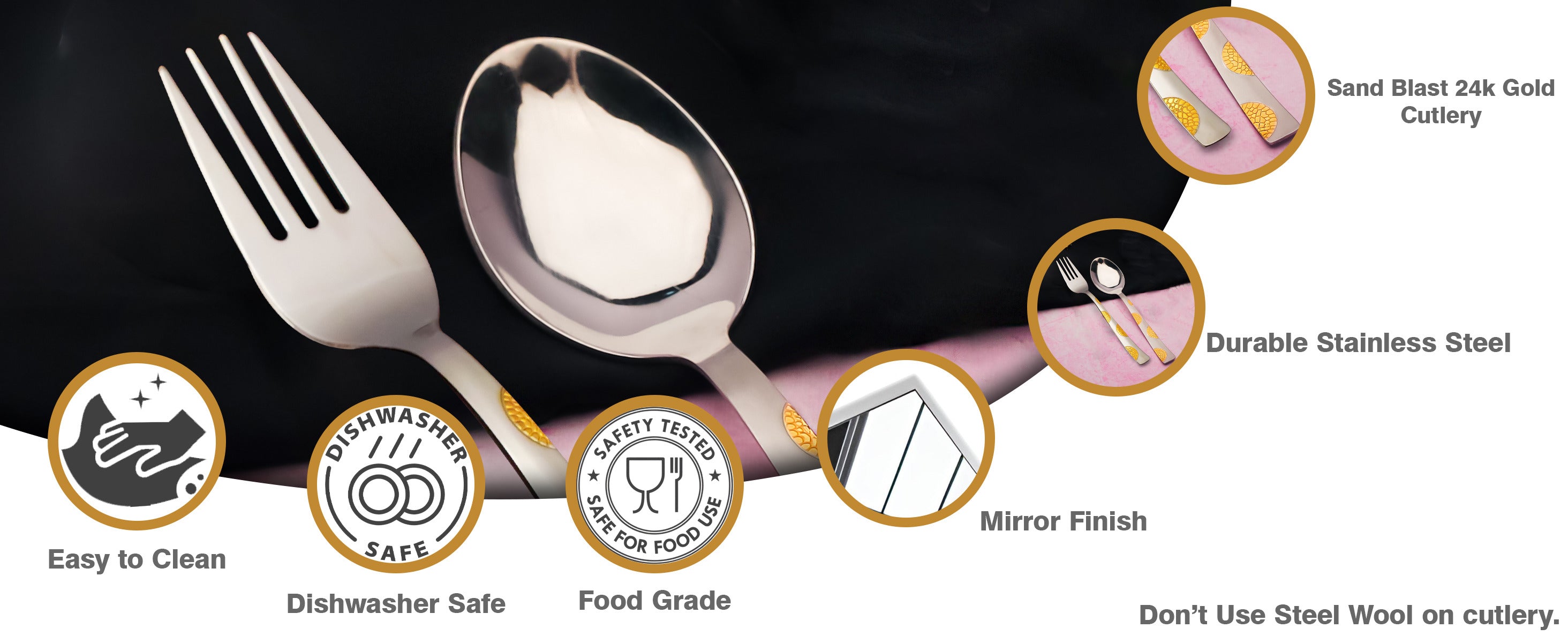 12pc Stainless Steel 24k Gold Cutlery | 16cm Spoons & Forks | Dining