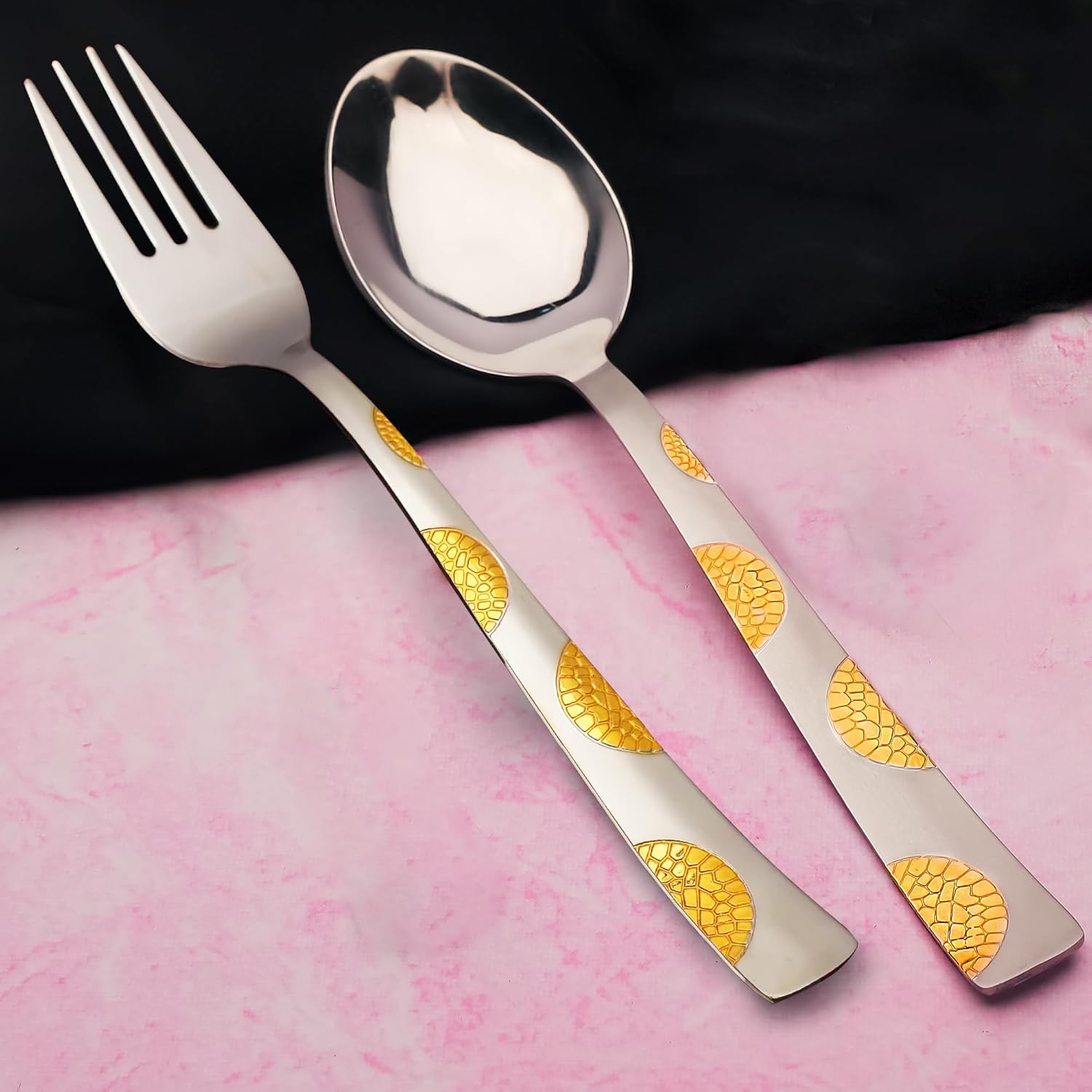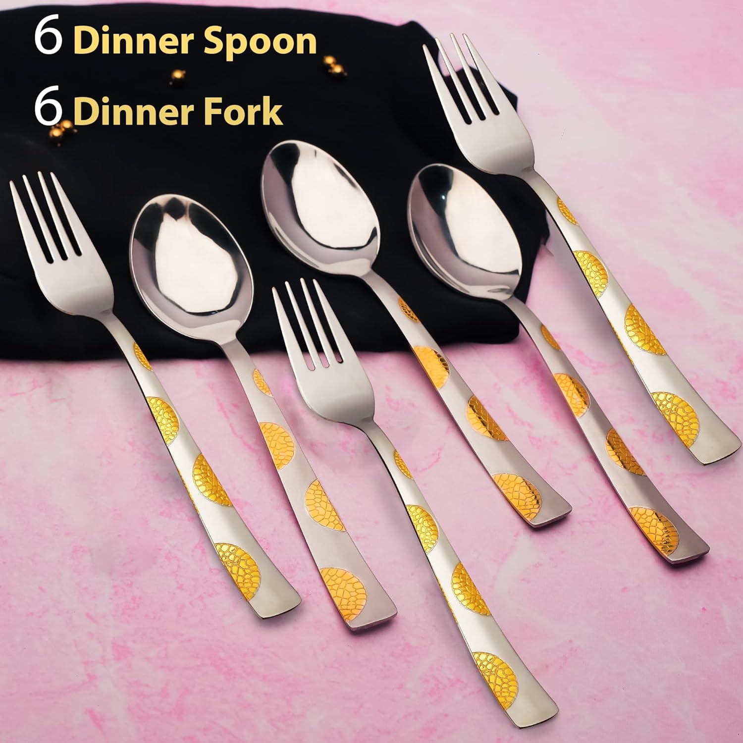 Elevate your dining experience with this 12-piece cutlery set, crafted from durable stainless steel and finished with luxurious 24k gold plating. Each piece, measuring 16cm, includes spoons and forks designed for everyday use or special occasions. This set combines lasting strength with refined elegance, adding a sophisticated touch to any table setting. Ideal for those seeking both style and functionality in their dining essentials.