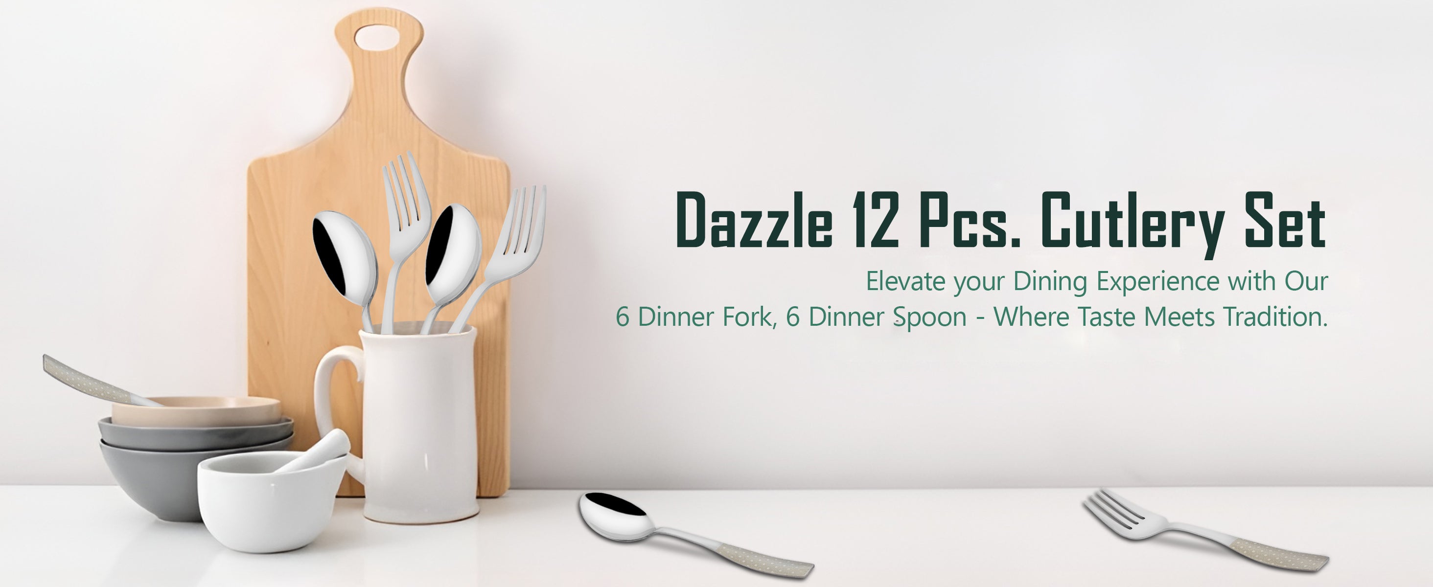 Elevate your dining experience with this 12-piece stainless steel cutlery set, featuring dinner spoons and forks in a sleek Silver Dazzle finish. Crafted for durability and elegance, this set combines robust stainless steel construction with a polished design that resists tarnish and corrosion. Perfect for everyday use or formal occasions, it offers both functionality and refined style to complement any table setting.
