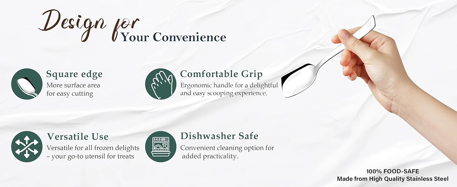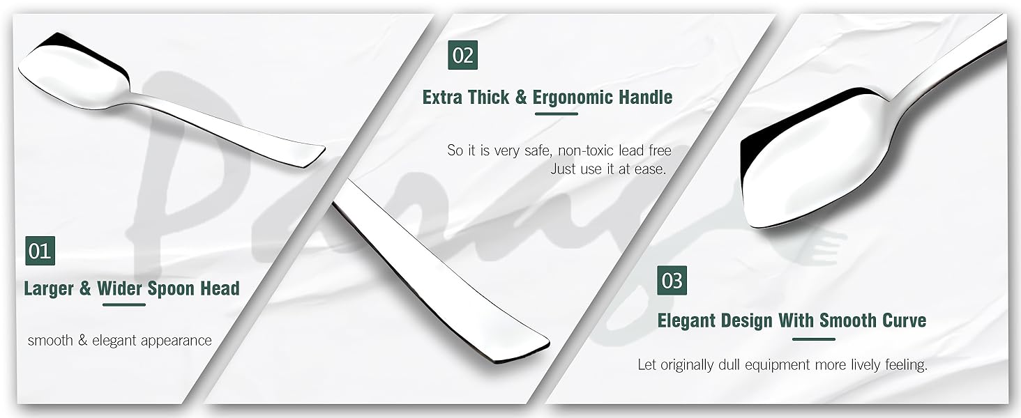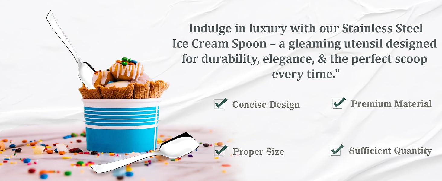 This set of 12 stainless steel ice cream spoons combines durability with a sleek, silver finish. Each spoon measures 13.5 cm, crafted from food-grade material to ensure safety and longevity. Designed for effortless scooping, these stylish dessert spoons are ideal for everyday use in both home and kitchen settings, providing a practical and elegant solution for serving your favorite frozen treats.