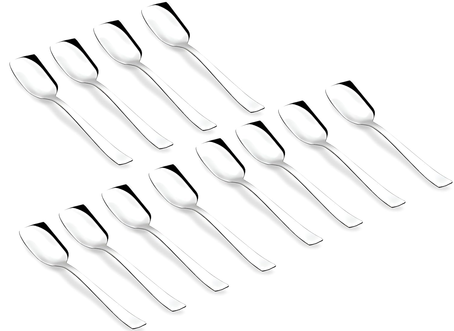 12 Pcs Stainless Steel Ice Cream Spoon Set – Silver, 13.5cm, Food Grade, Durable & Stylish Dessert Spoons for Home & Kitchen