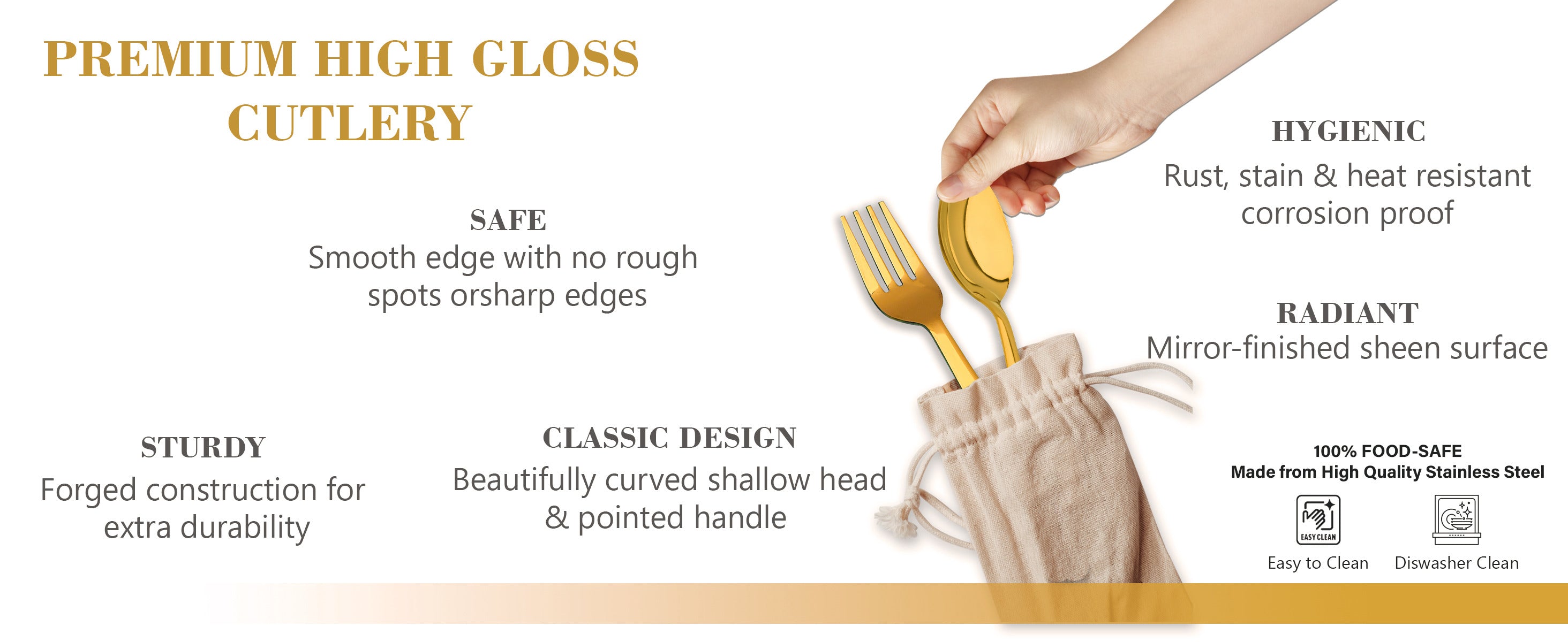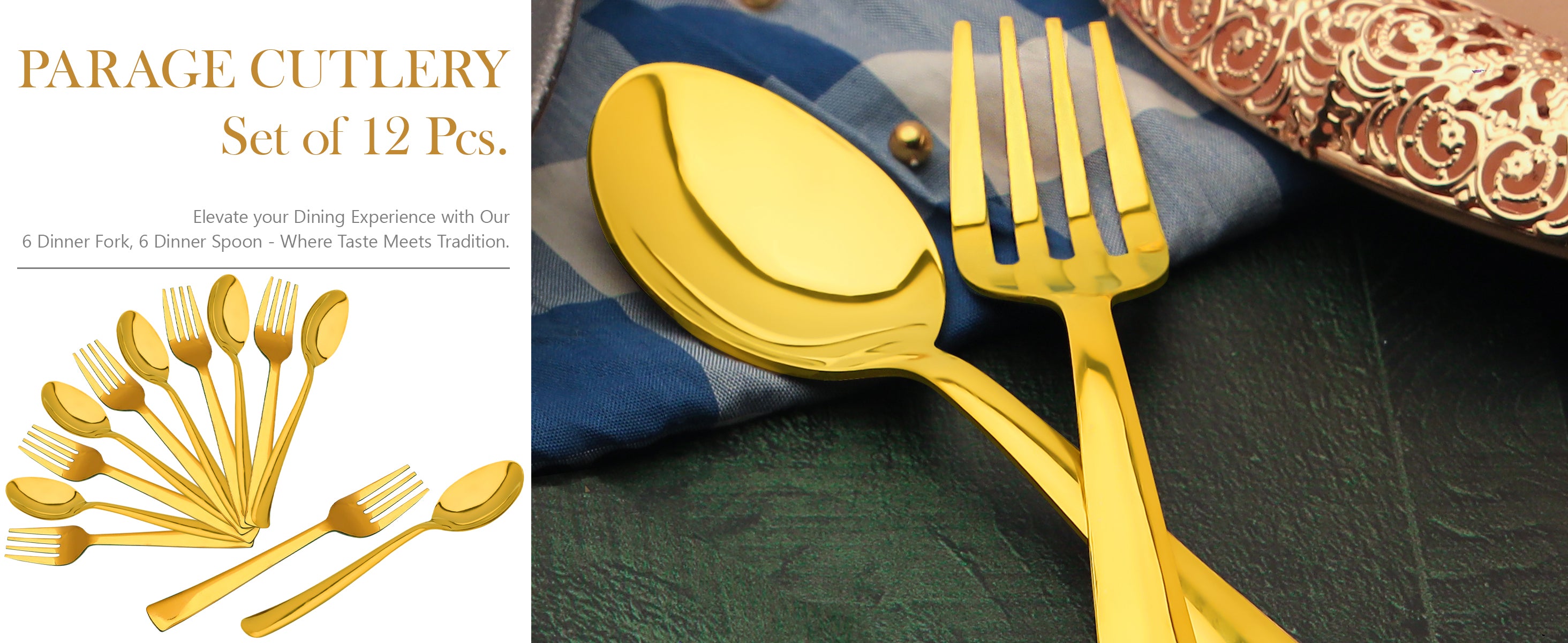 12pc Stainless Steel Golden Cutlery | 16cm Spoons & Forks | Dining