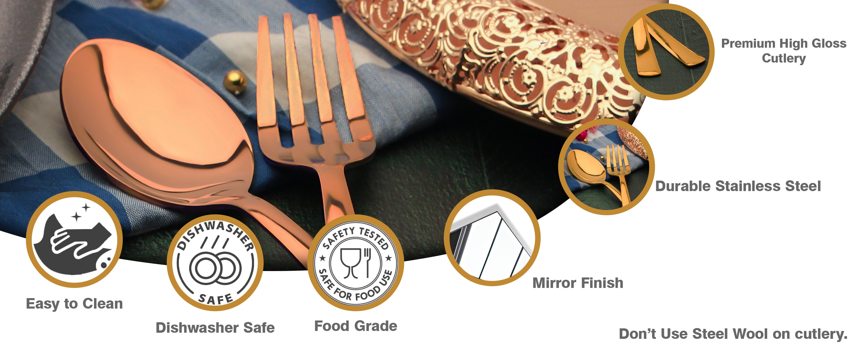 Elevate your dining experience with this 12-piece stainless steel cutlery set featuring a stunning rose gold finish. Each set includes six 16cm dinner spoons and six matching forks, crafted with premium PVD coating for enhanced durability and corrosion resistance. Designed for both everyday use and elegant occasions, this flatware combines modern aesthetics with practical functionality, making it an ideal choice for home and kitchen settings.