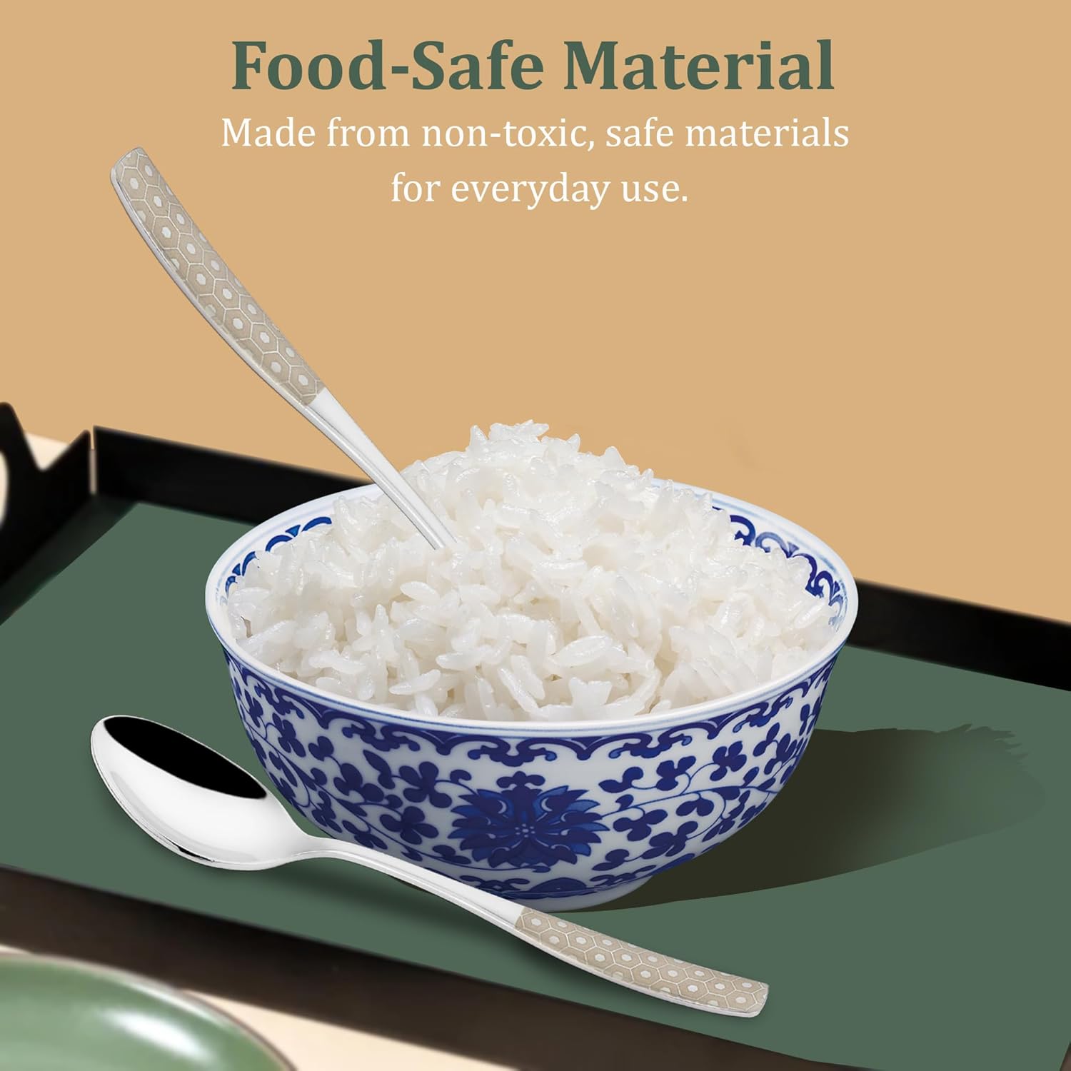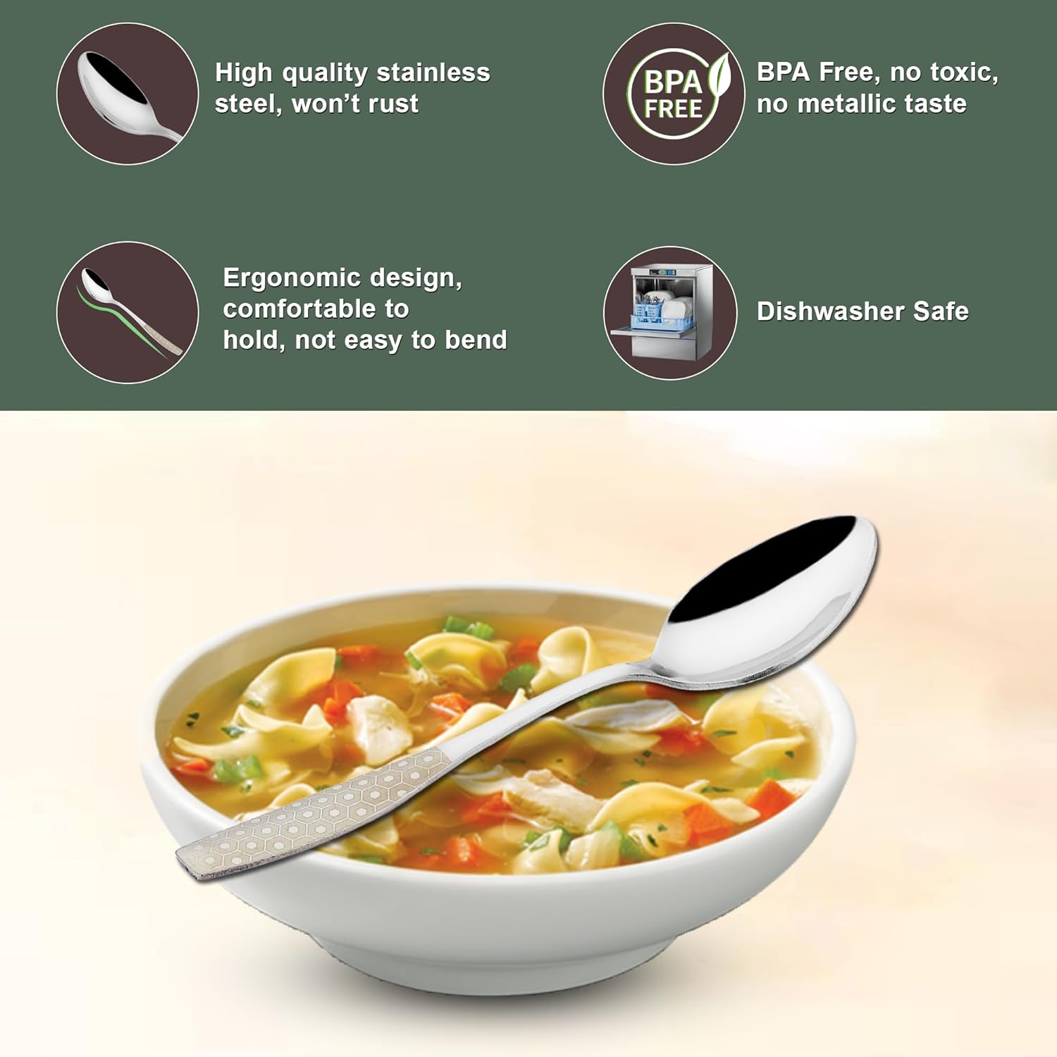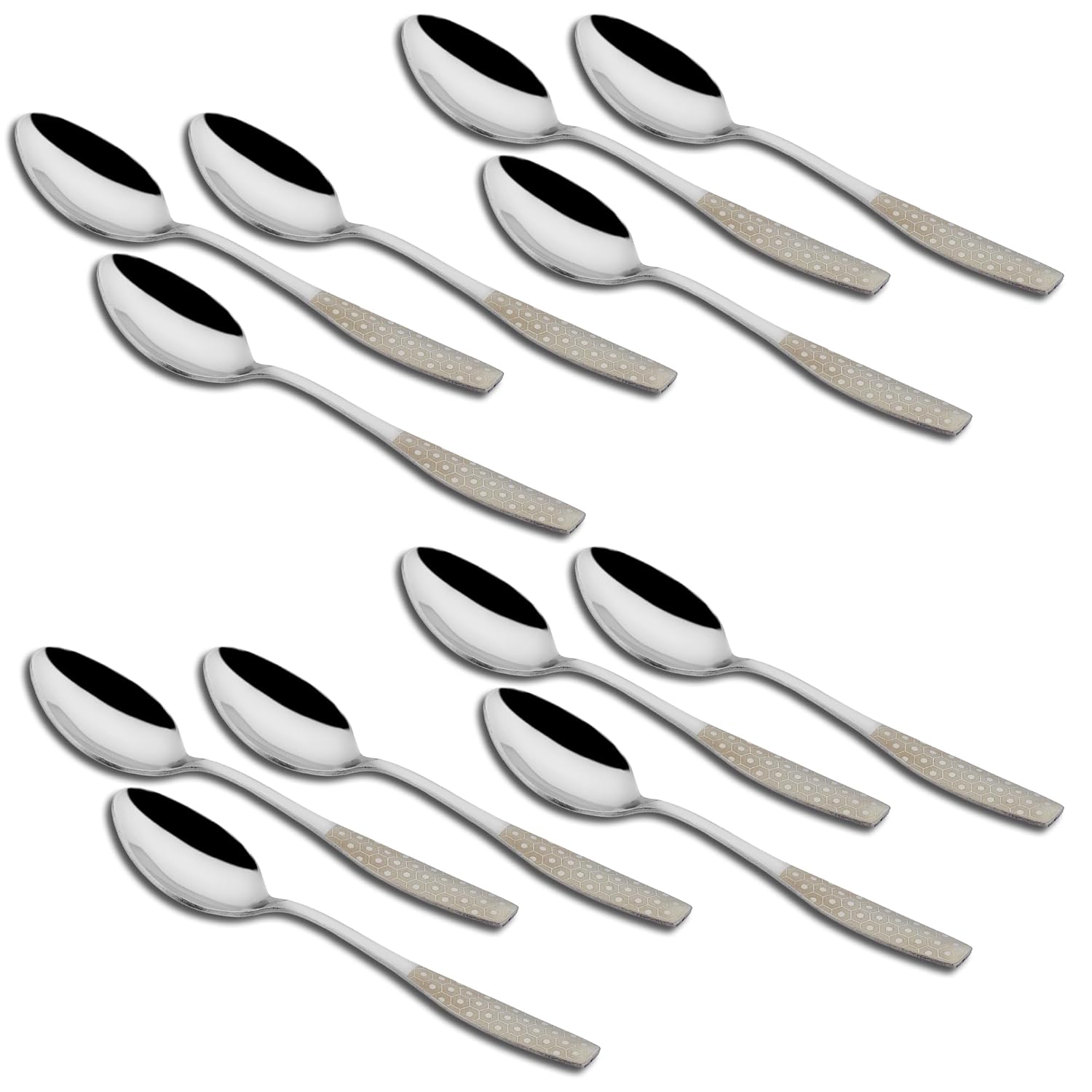 12 Pieces Stainless Steel Premium Dinner Spoon Set for Home & Kitchen – 16 cm Luxury Dining Tableware, Laser Chammach Set Gift, Silver with Dazzle Design