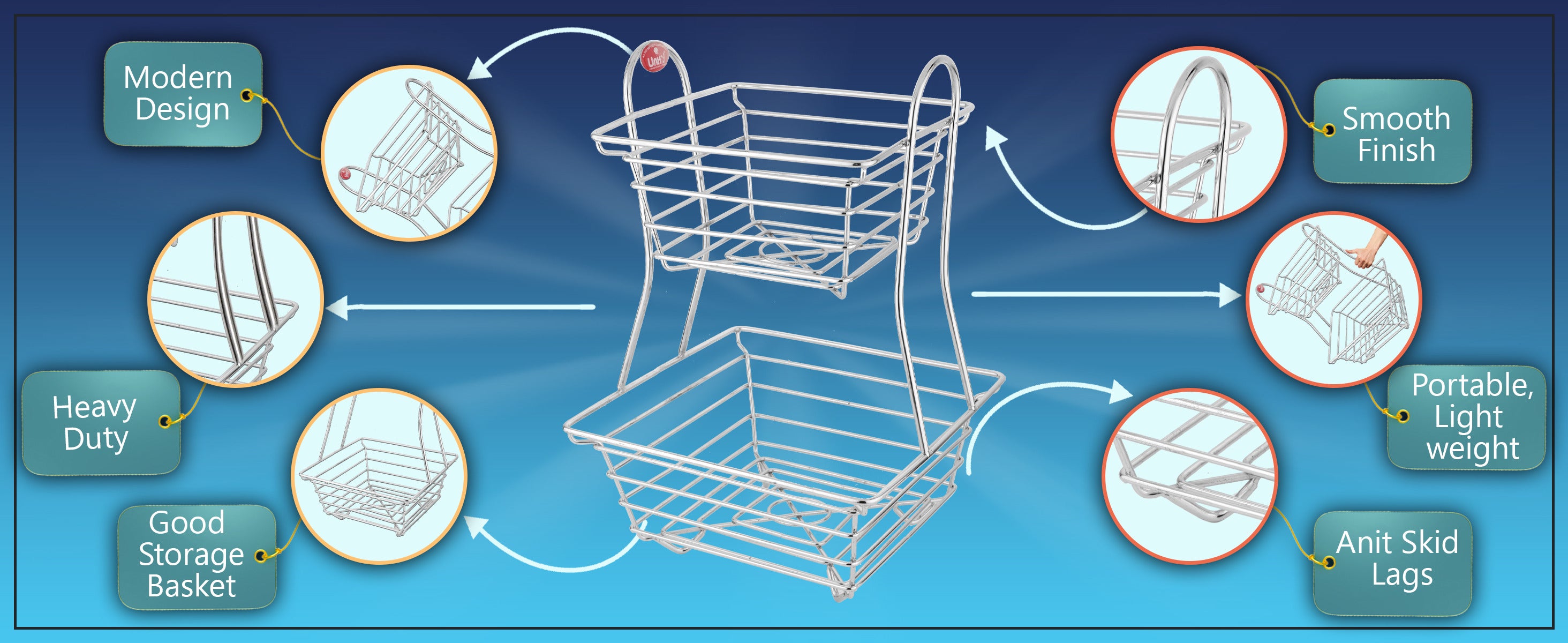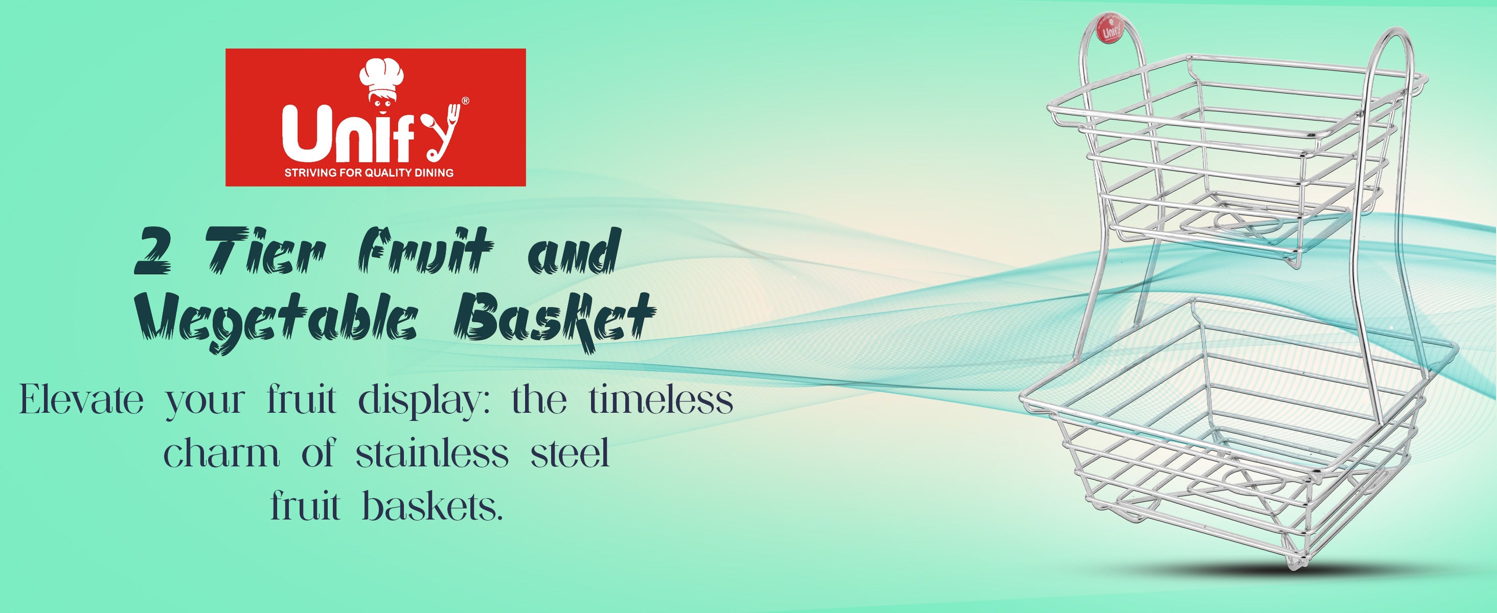 Elevate your kitchen and dining space with this 2-tier stainless steel fruit basket featuring a sleek square design. Crafted for durability and rust resistance, it provides organized storage while maximizing countertop space. Its sturdy construction ensures stable display of fruits and snacks, making it a practical and elegant addition to your home.