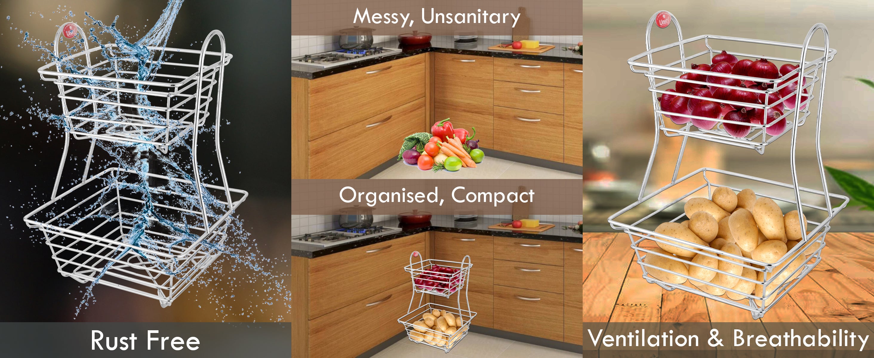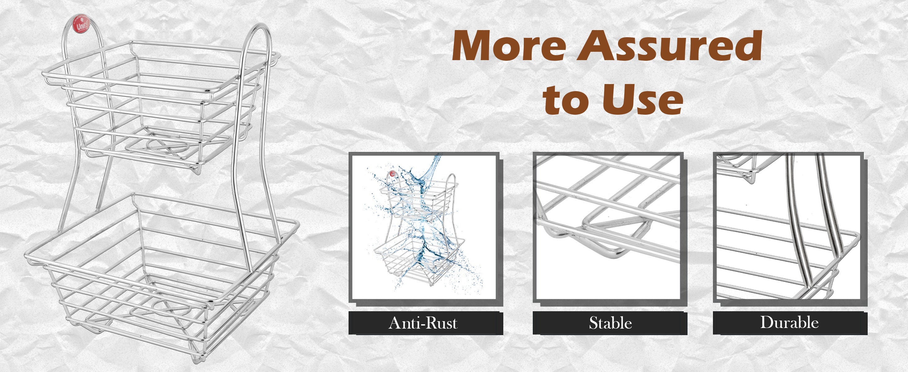 2-Tier Stainless Steel Fruit Basket – Square, Kitchen & Dining Table Stand