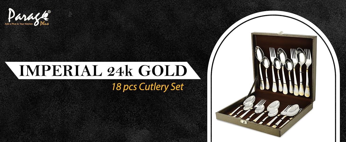 18pc Stainless Steel Golden Cutlery | Gift Box | Imperial