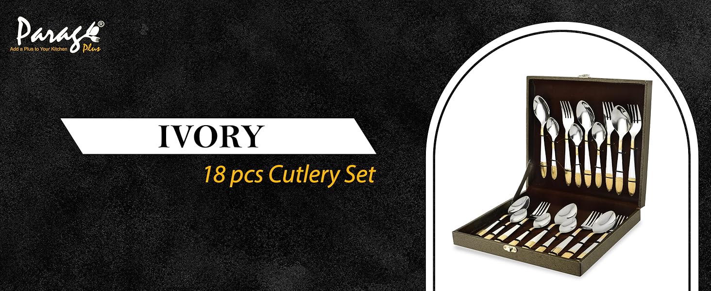 18pc Stainless Steel Golden Cutlery | Gift Box | Ivory Design
