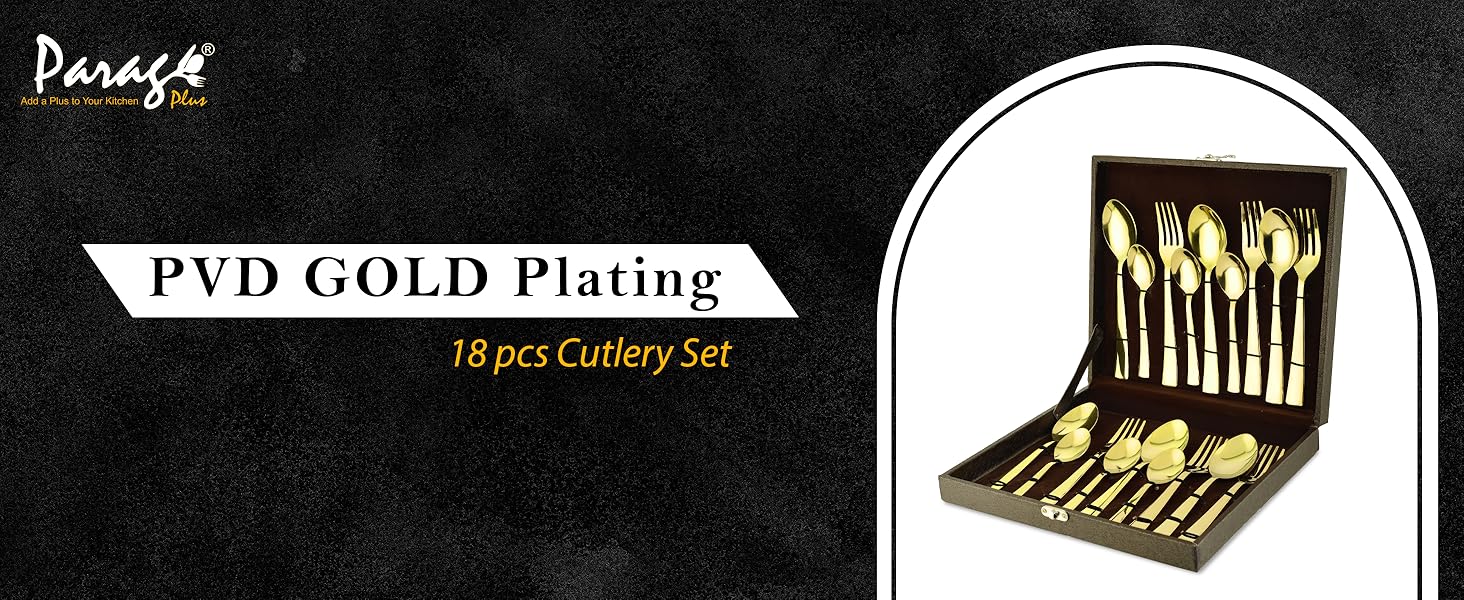 18pc Stainless Steel Golden Cutlery | Gift Box | PVD Gold