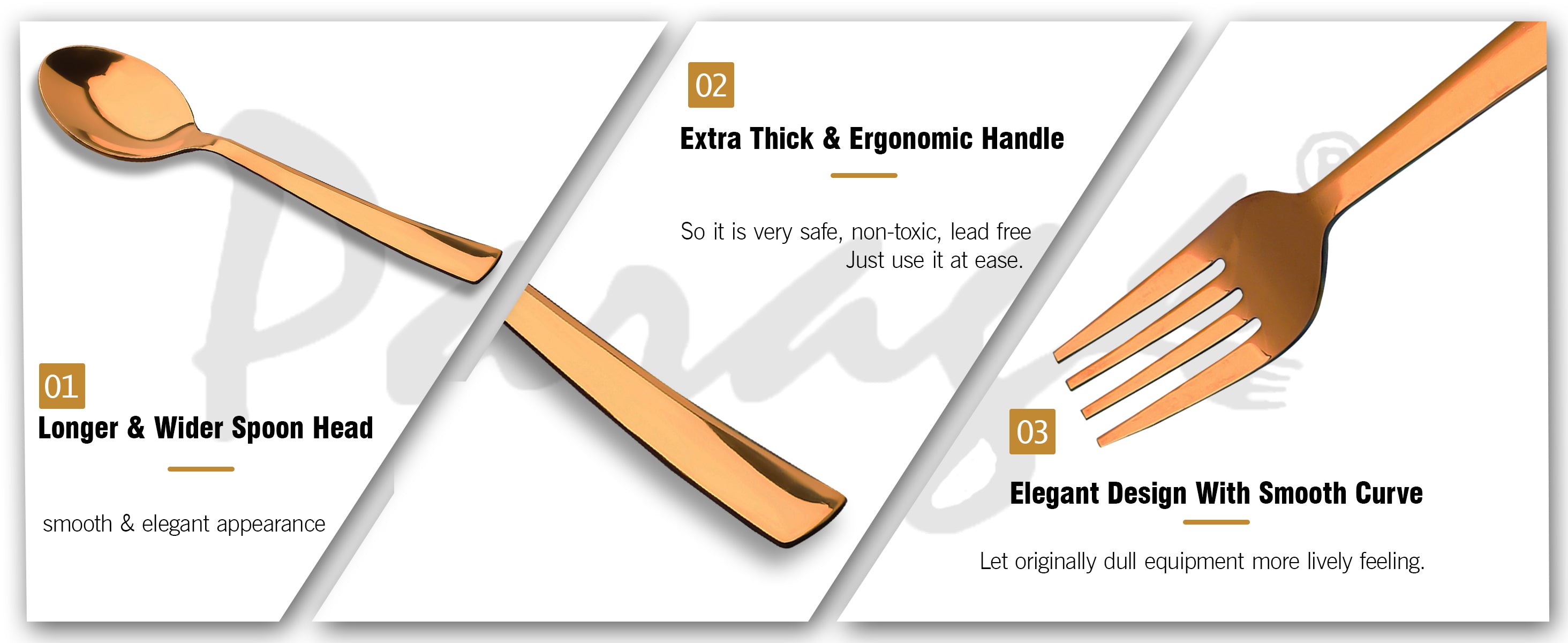 Elevate your dining experience with this 18-piece stainless steel cutlery set in elegant rose gold finish. Featuring spoons, forks, and teaspoons, this durable collection combines style with practicality. Crafted for everyday use, each piece offers corrosion resistance and easy maintenance, ensuring long-lasting shine and performance at your table. Ideal for both casual meals and special occasions, this set brings a sophisticated touch to any dining setting.