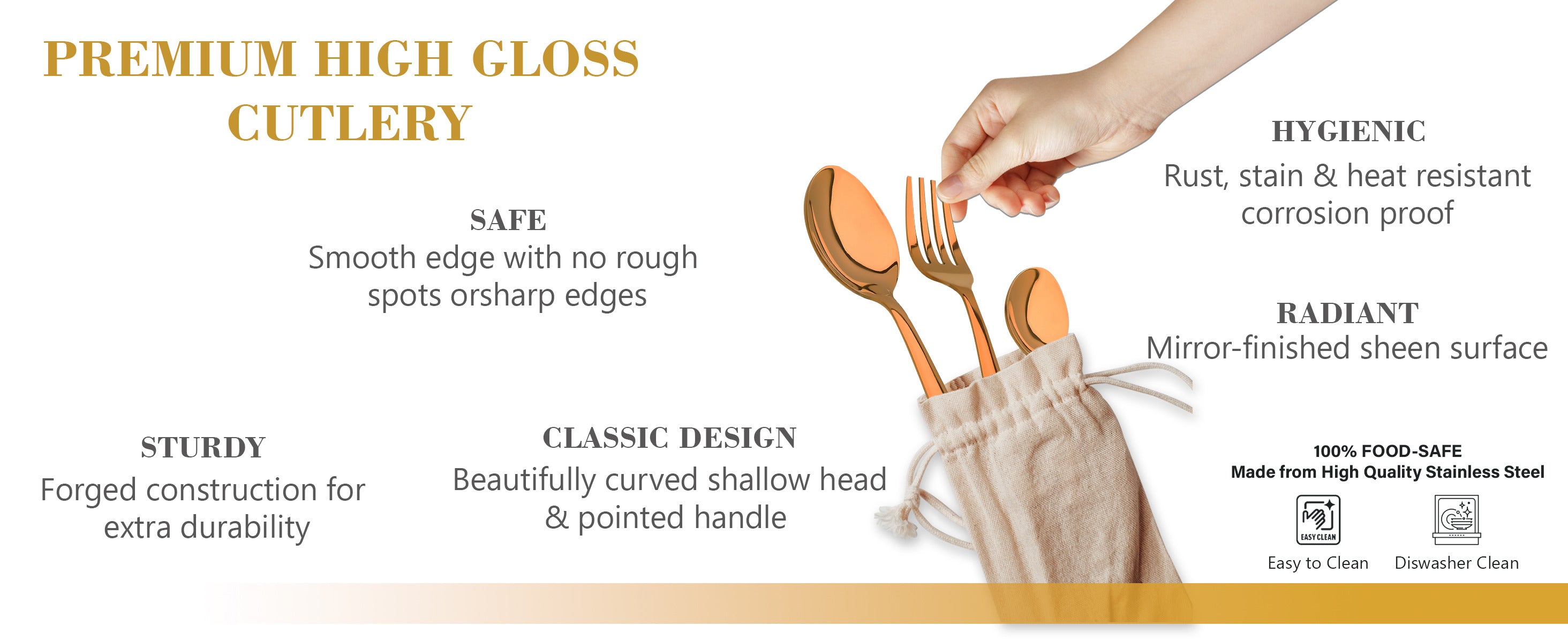 18pc Stainless Steel Rose Gold Cutlery | Spoons Forks Tea | Dining