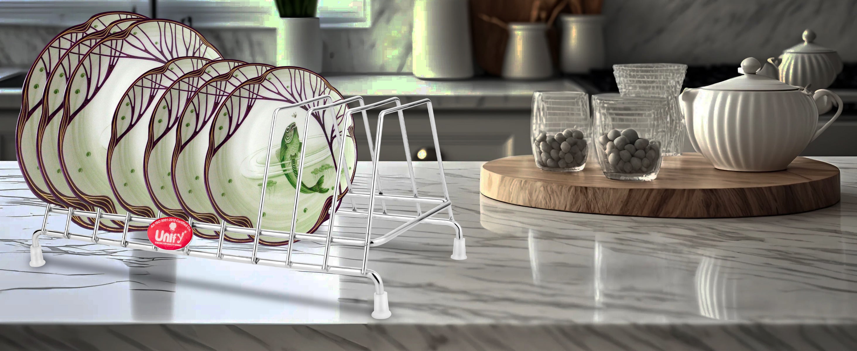 - MULTI-USE PLATE HOLDER-: Use At Kitchen Shelves, Counter tops, Dinner Tables, Cupboards. Plate stand for Kitchen cabinet; Plate Holder stand for kitchen