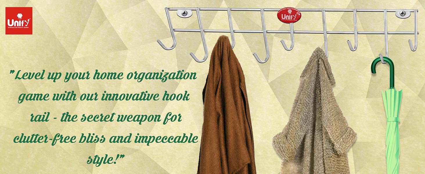2-Piece Stainless Steel Hook Rail | Wall & Door Hanger for Bathroom & Kitchen (Silver)