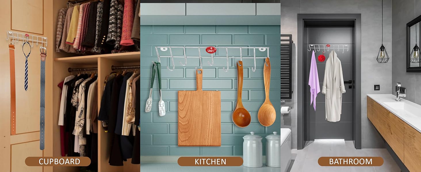 - MULTIPURPOSE: Door Hanger is ideal for the kitchen, closets, living room, bathroom, and bedroom. It is perfect for hanging spoons, utensils, brushes, clothes, bracelets, necklaces, and so on
