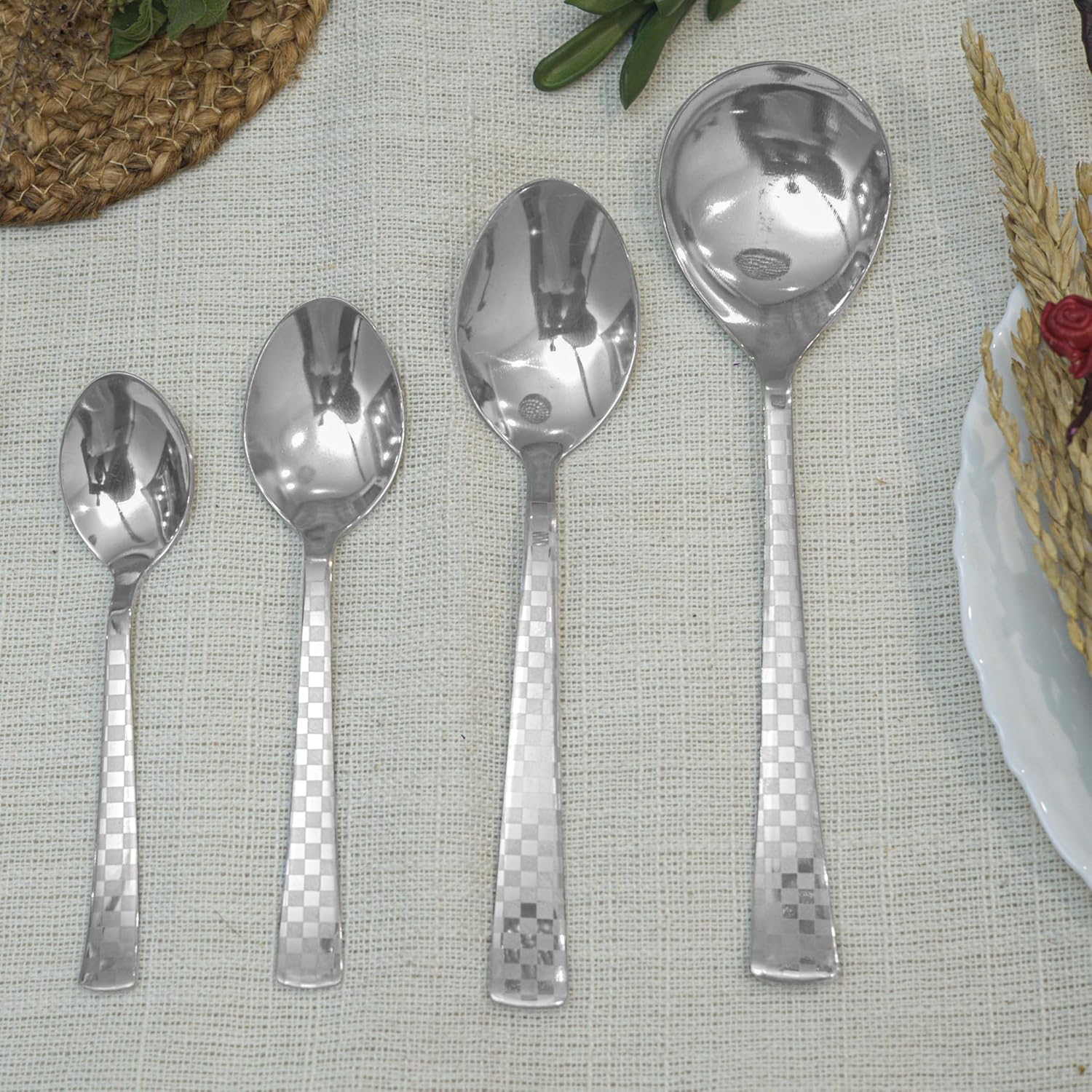 Serve in style with the Parage 2 Pieces Stainless Steel Premium Serving Spoon Set. Crafted from high-quality stainless steel with an elegant checks design and mirror finish, these 21 cm large spoons are durable, rust-resistant, and perfect for serving rice, curries, and more. Ideal for home, restaurants, and gifting. Easy to clean and dishwasher safe.