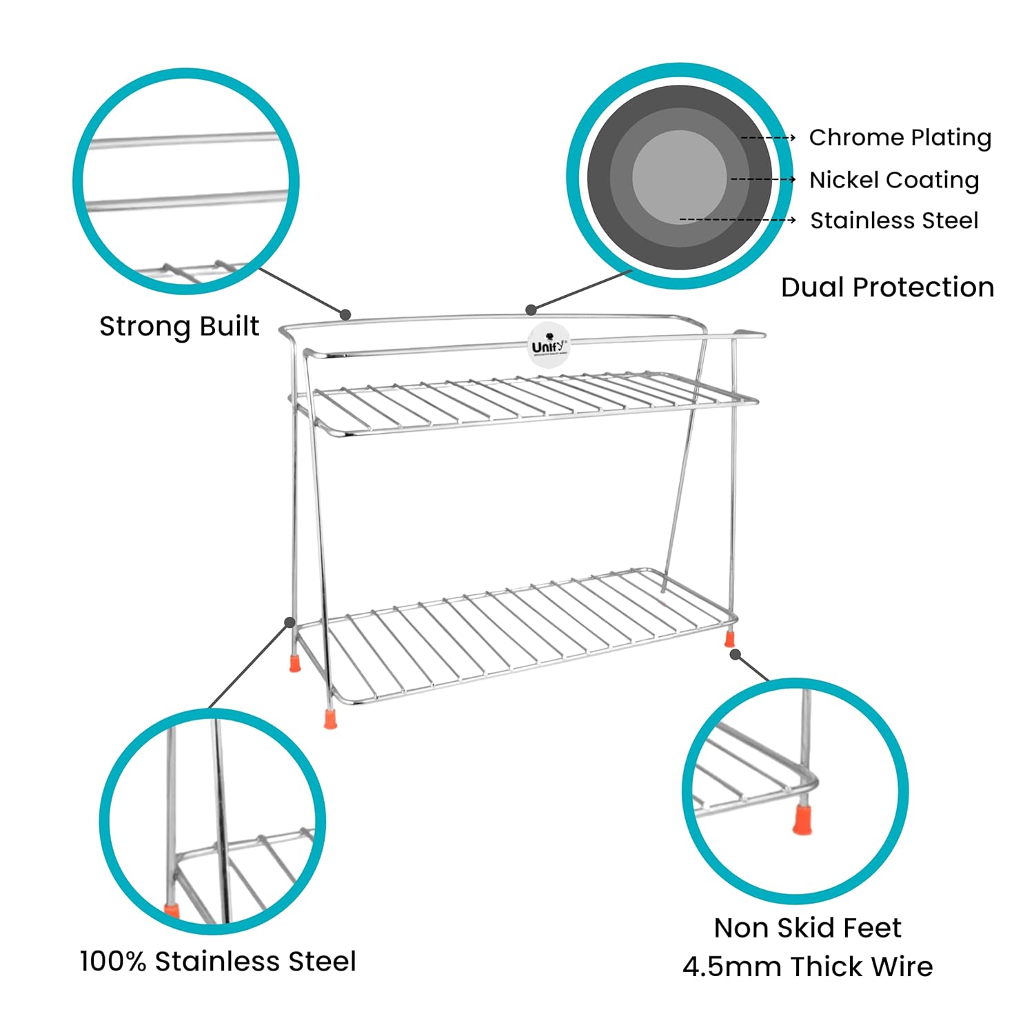 Keep your kitchen neat and organized with this 2-tier stainless steel trolley rack. Ideal for storing utensils, containers, and kitchen essentials, it offers sturdy construction and a sleek silver finish. Perfect for home, kitchen, or multipurpose storage with easy access and modern style.