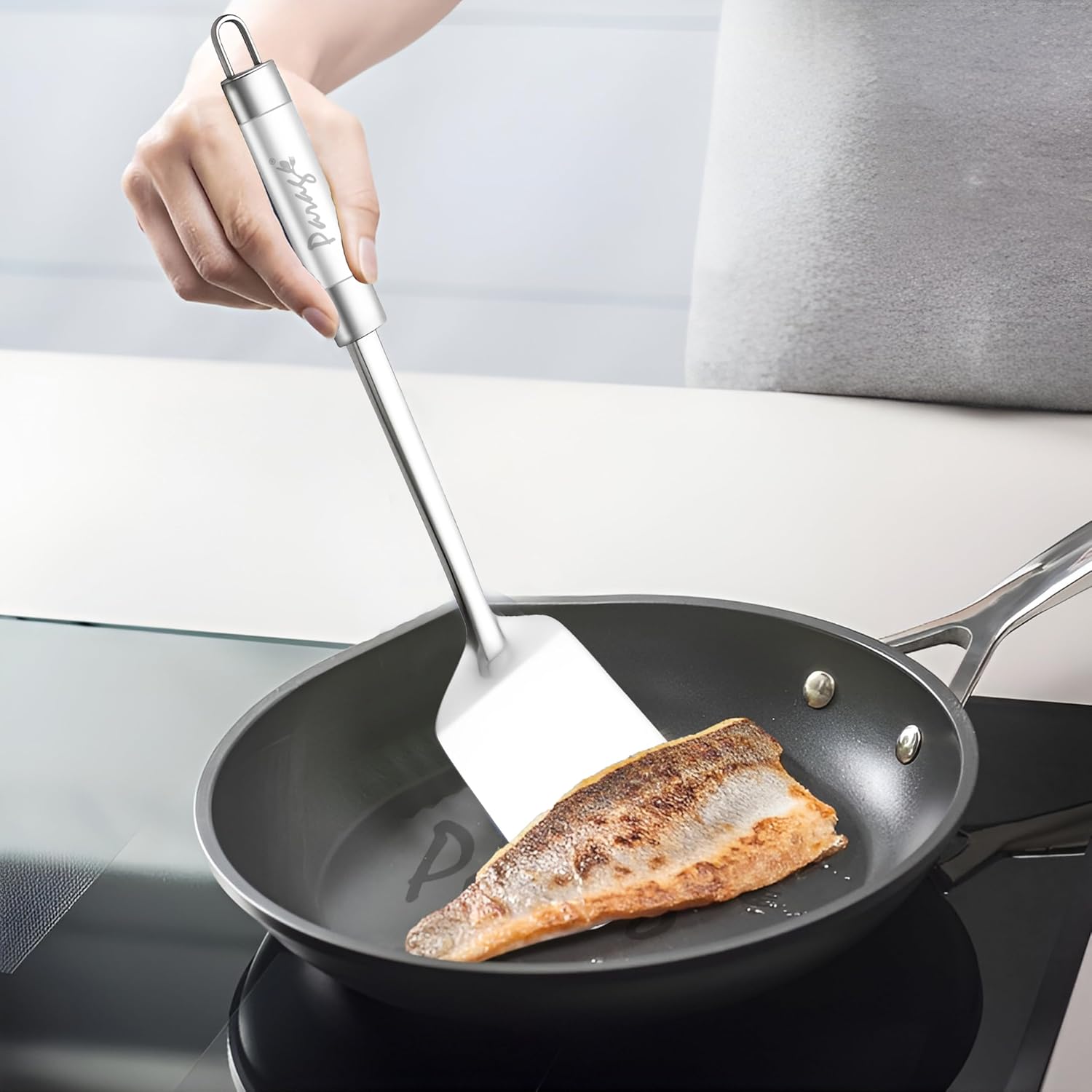 3 Pieces Stainless Steel Kitchen Tools for Cooking & Serving – Basting Spoon, Ladle, Turner with Dual Tone Handles, Silver Finish