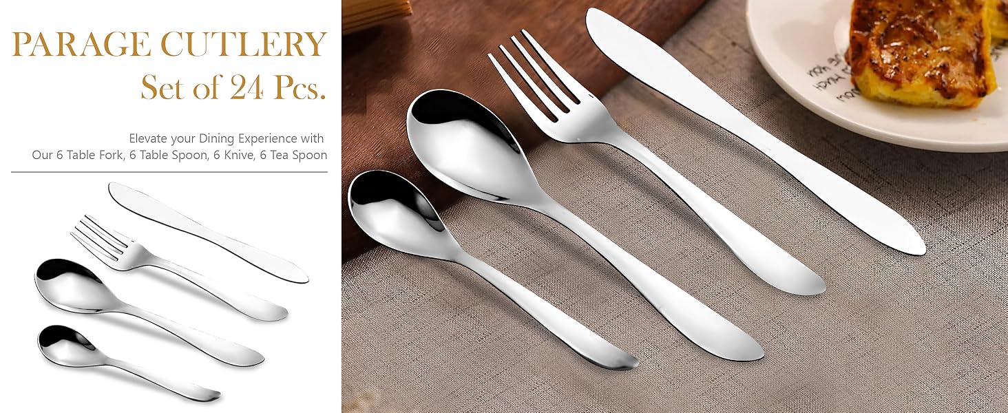 24 Pcs Premium Stainless Steel Cutlery Set for Home & Kitchen | Silver Tableware