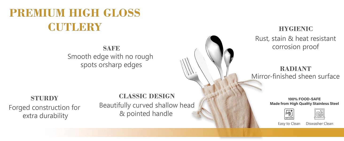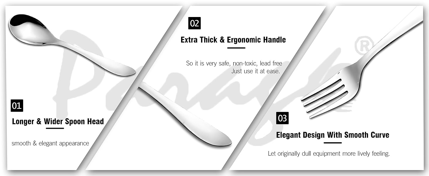 - IDEAL FINISH: Each cutlery set is crafted with a top-notch and high grade quality. The cutlery set's smooth edges make it safe to use and its balanced weight makes it easy to handle