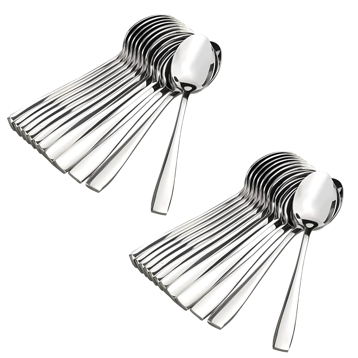 24 Pieces Stainless Steel Dinner Spoon Set, 16 cm Mirror Polished Silverware for Home & Kitchen (Silver)