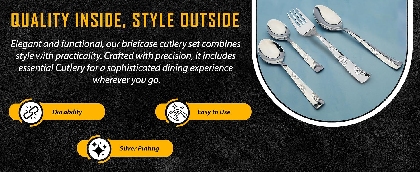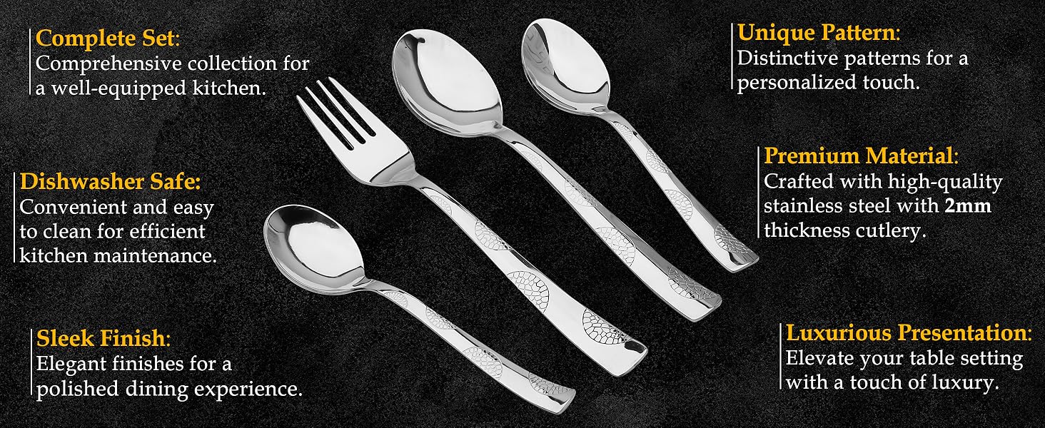 This 24-piece stainless steel cutlery set offers a complete dining solution with spoons and forks, expertly crafted for durability and everyday use. Presented in a stylish gift box, it makes an ideal choice for gifting or personal use. The high-quality stainless steel ensures rust resistance and easy maintenance, while the balanced design enhances comfort during meals. Perfect for both casual dining and special occasions, this set combines practicality with elegant simplicity.