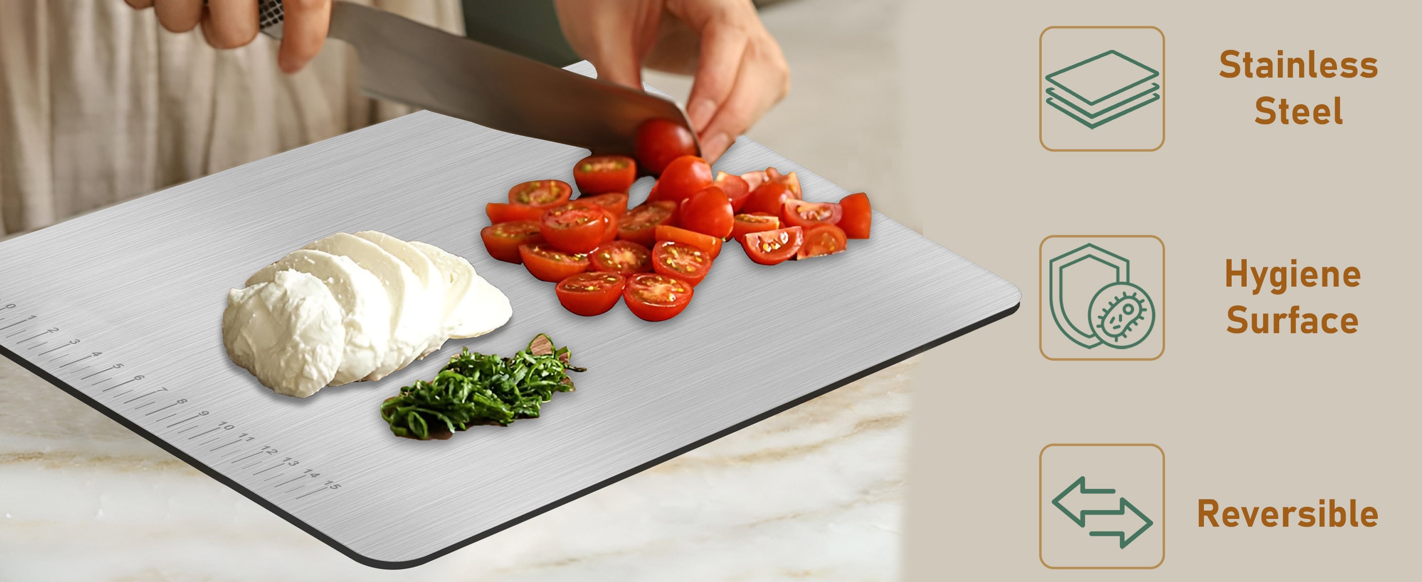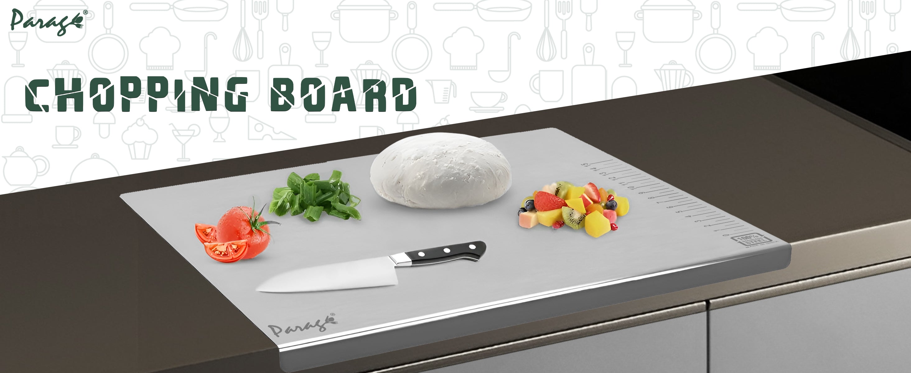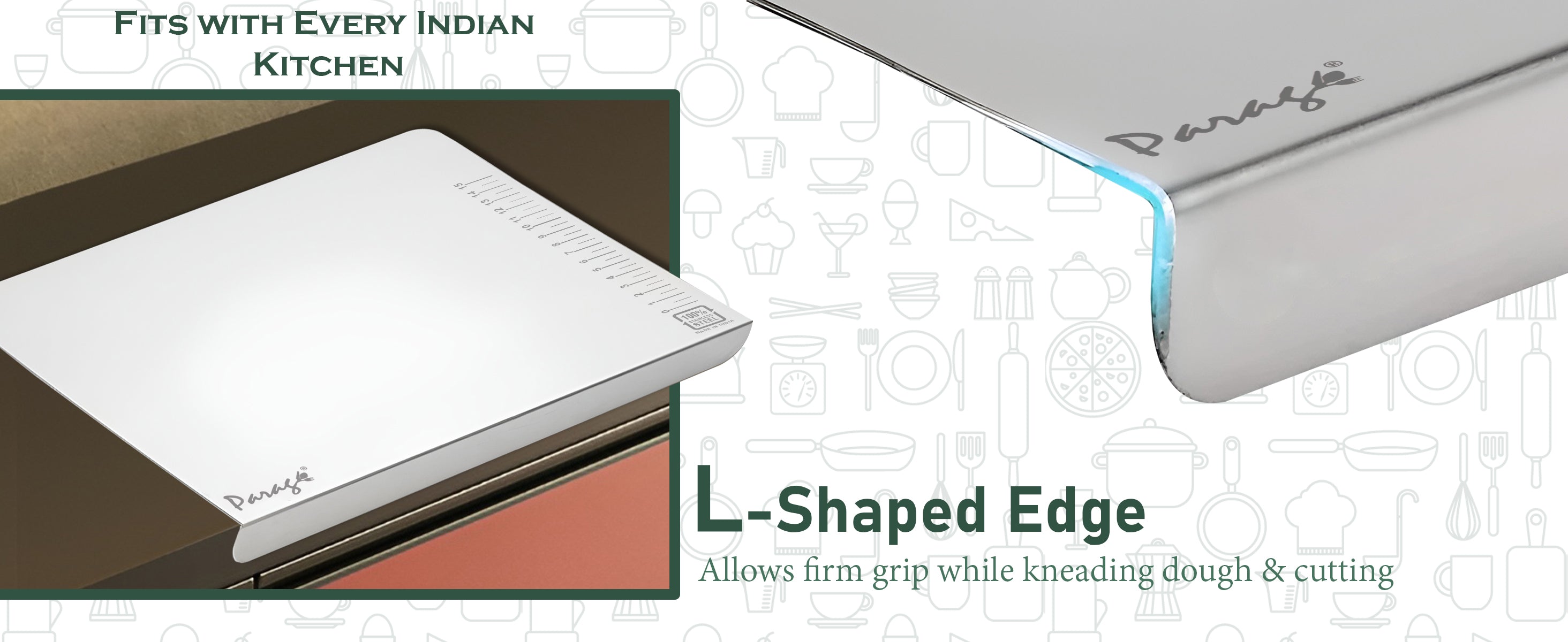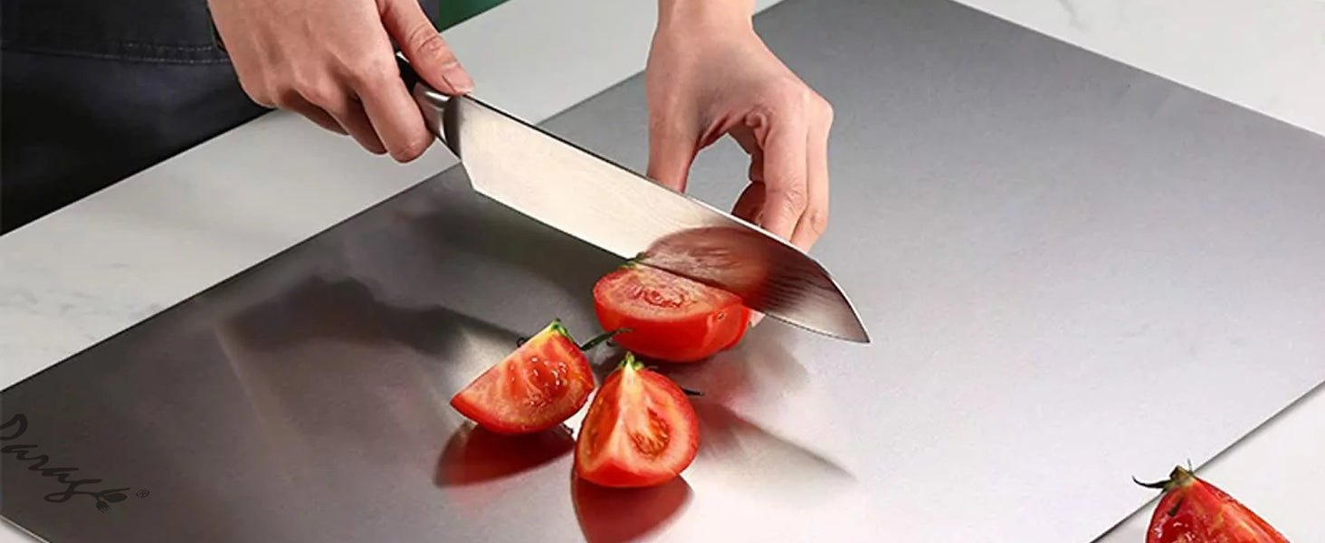Stainless Steel Countertop Chopping Board with Lip – L-Shape 41x31 cm for Meat, Fruits, Vegetables, Heavy Duty, Rust-Free, Kitchen & Professional Use