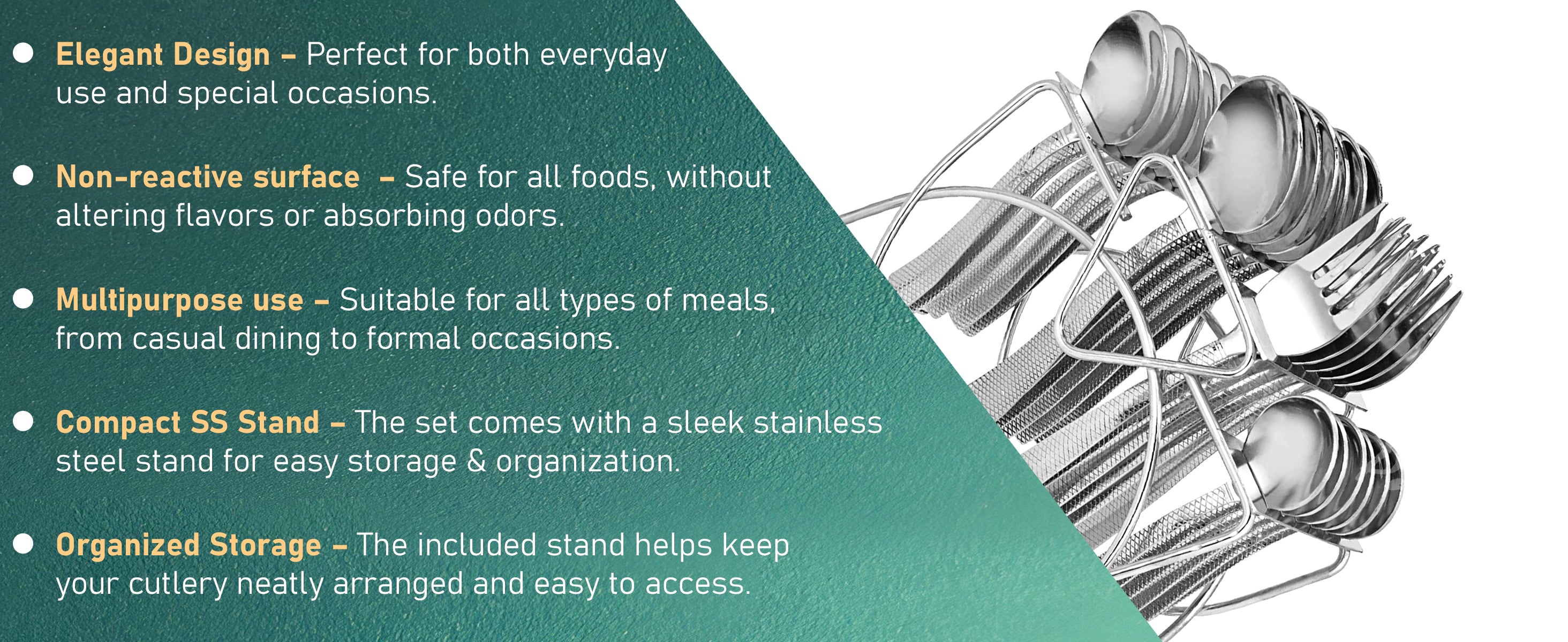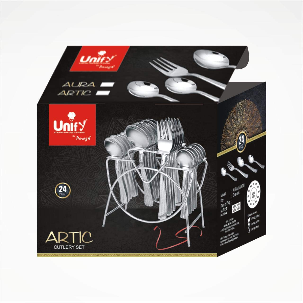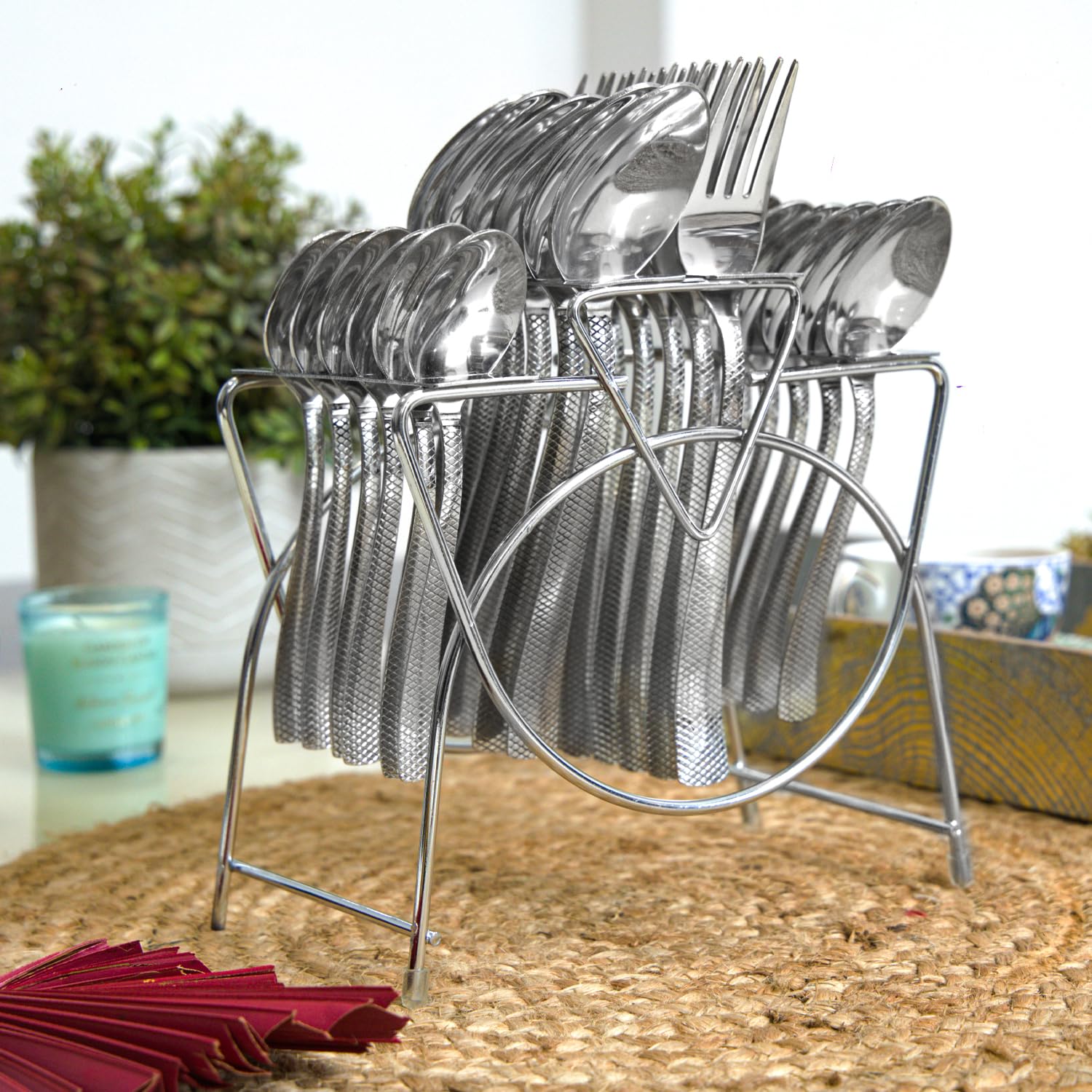 25 Pcs Premium Stainless Steel Cutlery Set with Stand for Home & Kitchen | Silver