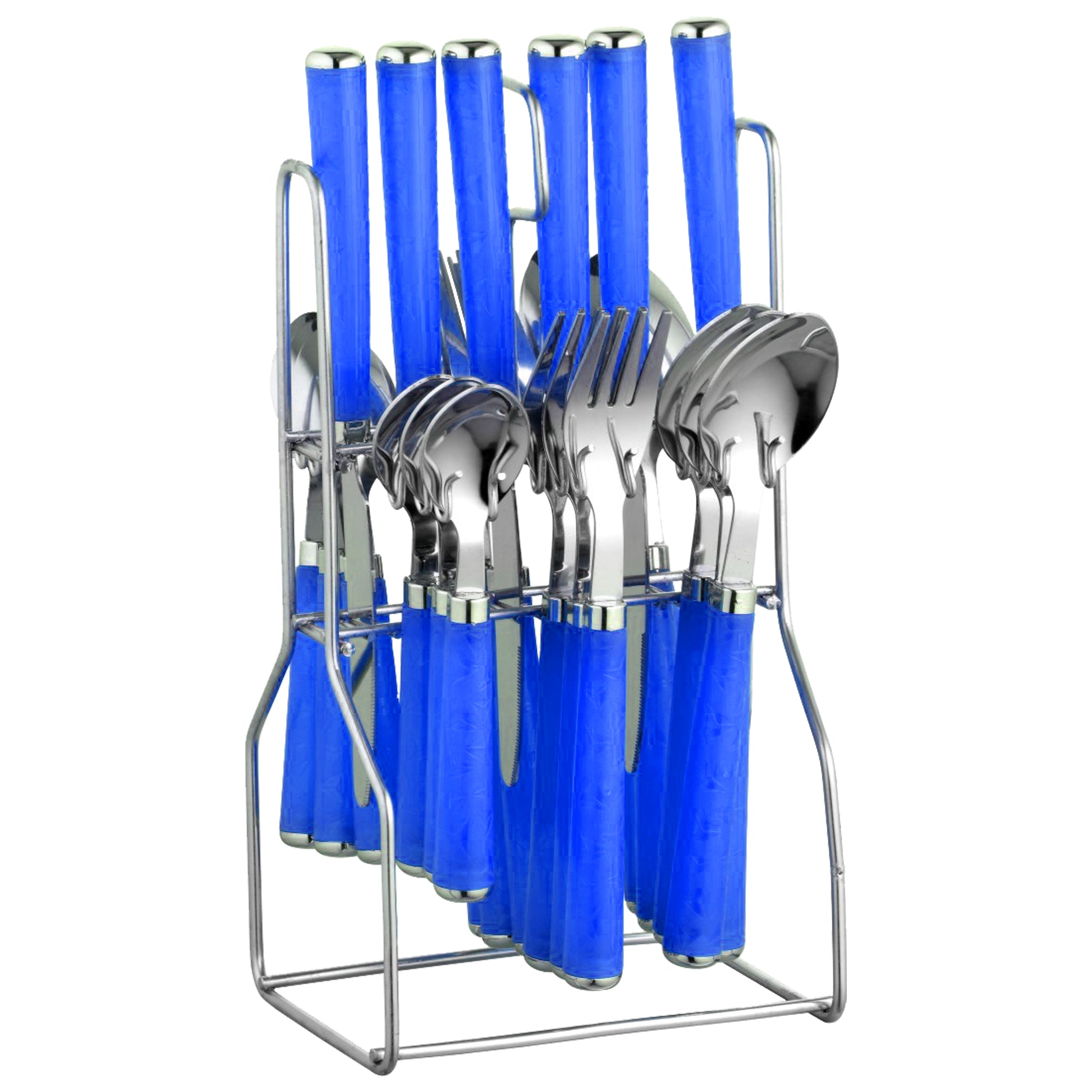 25 Pcs Stainless Steel Cutlery Set with Stand for Kitchen & Dining | Blue