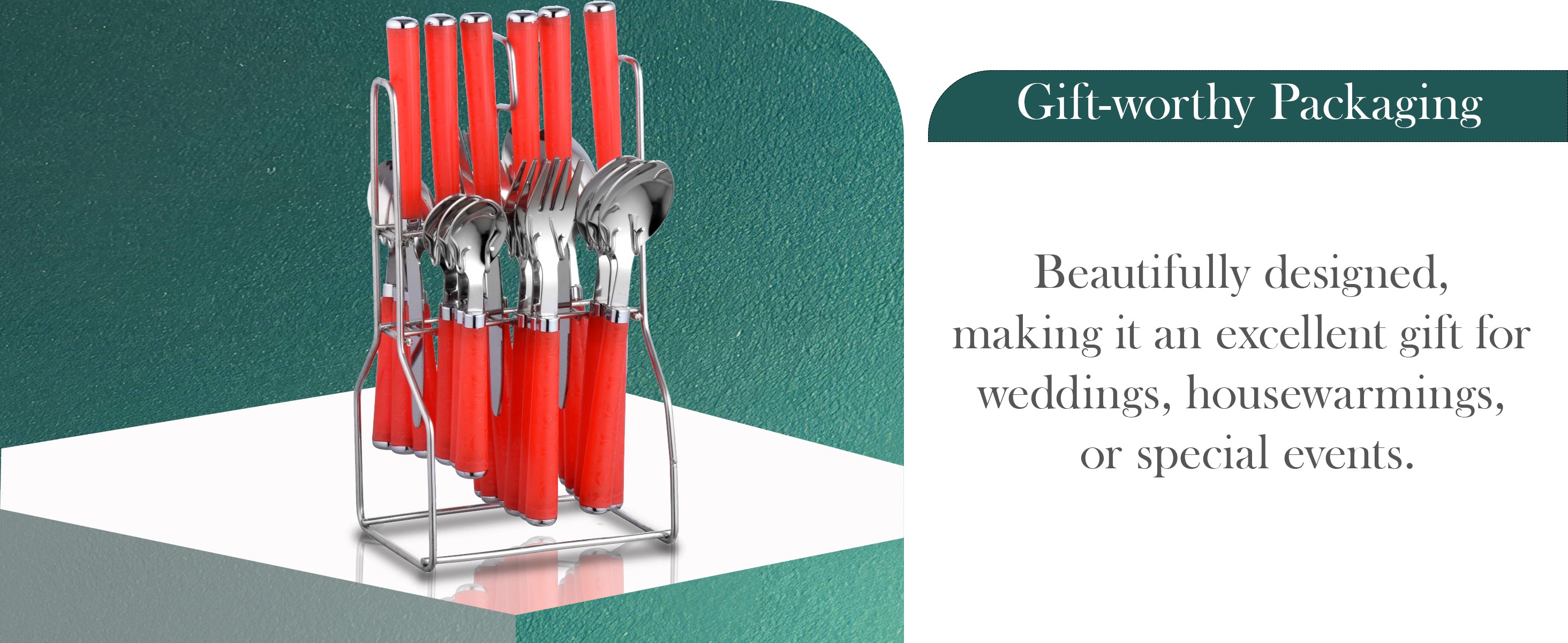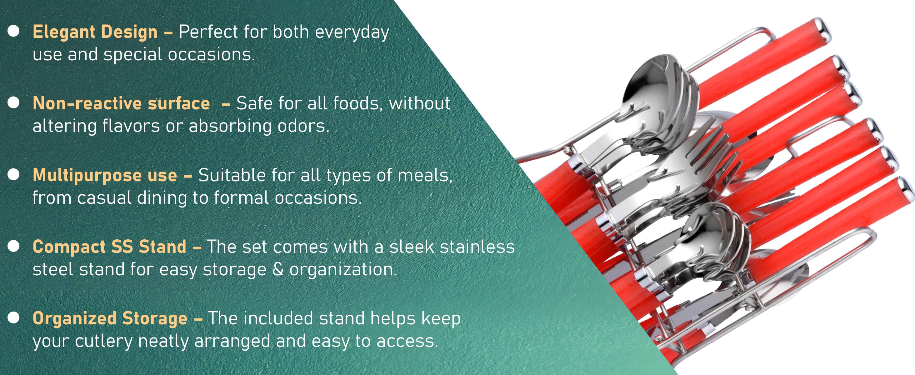 25 Pcs Stainless Steel Cutlery Set with Stand for Kitchen & Dining | Red