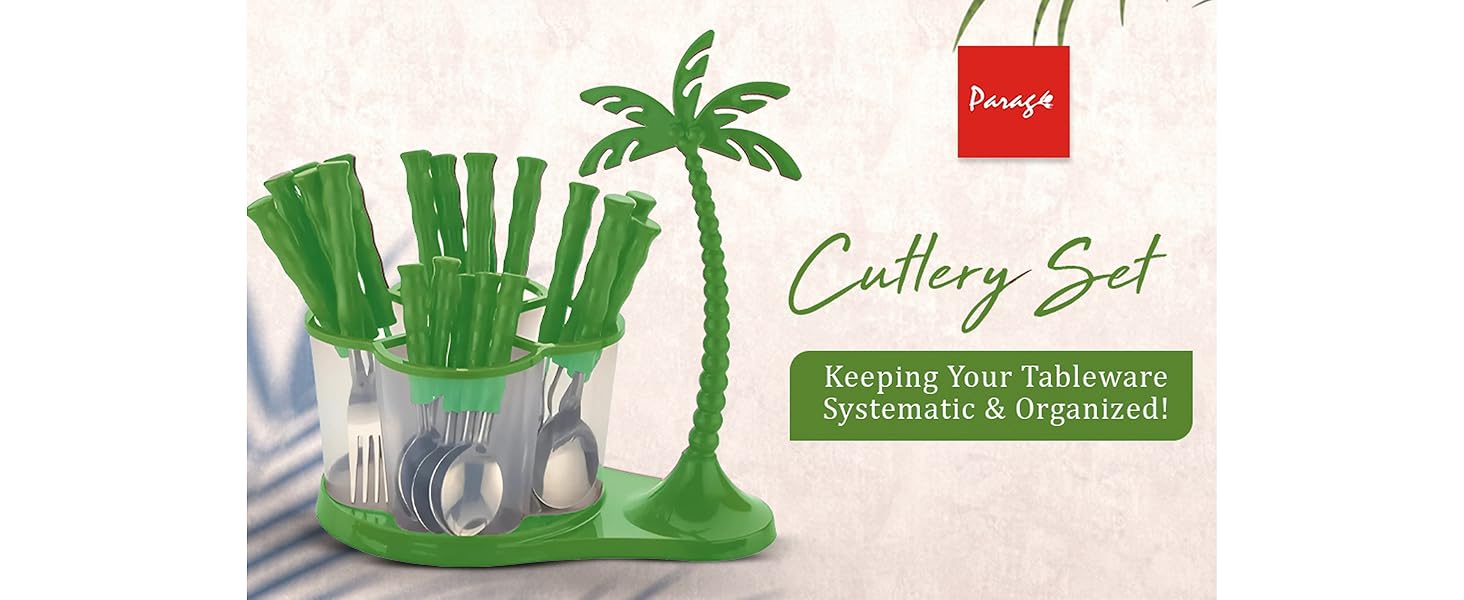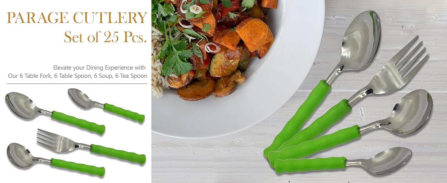 25 Pcs Stainless Steel Cutlery Set with Stand & Storage Box for Kitchen | Green