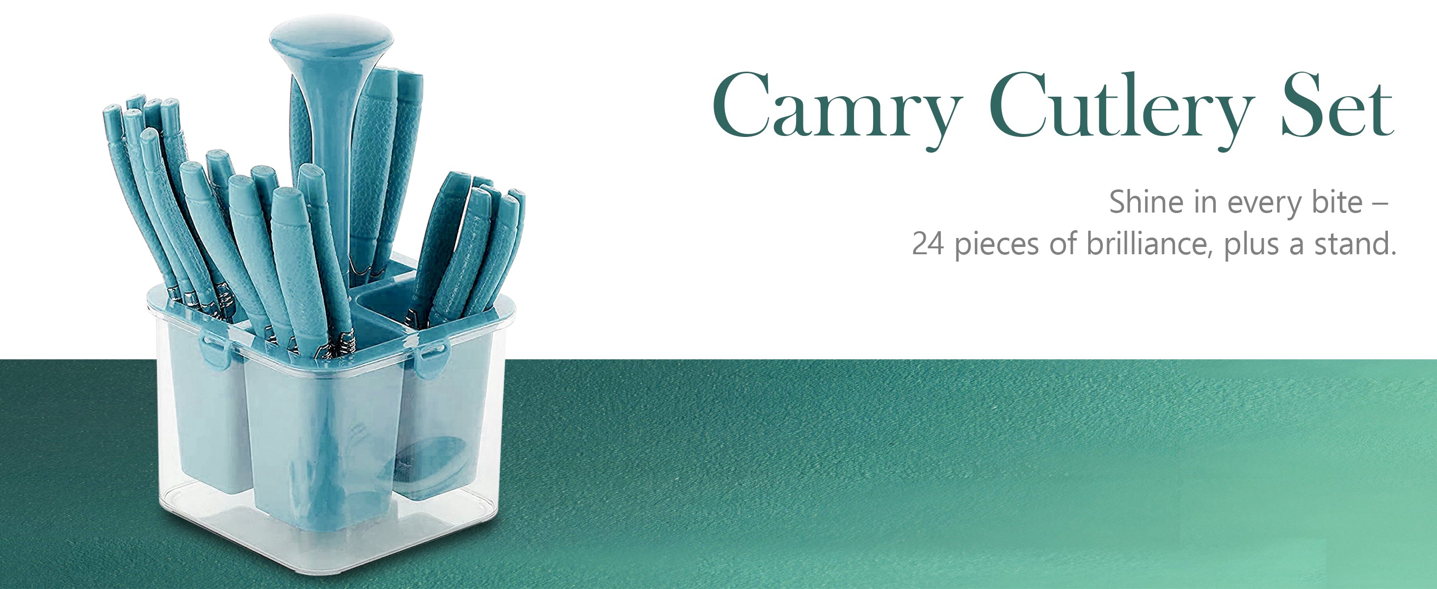 25-Piece Camry Stainless Steel Cutlery Set with Storage Box | Premium Spoons & Forks, Blue