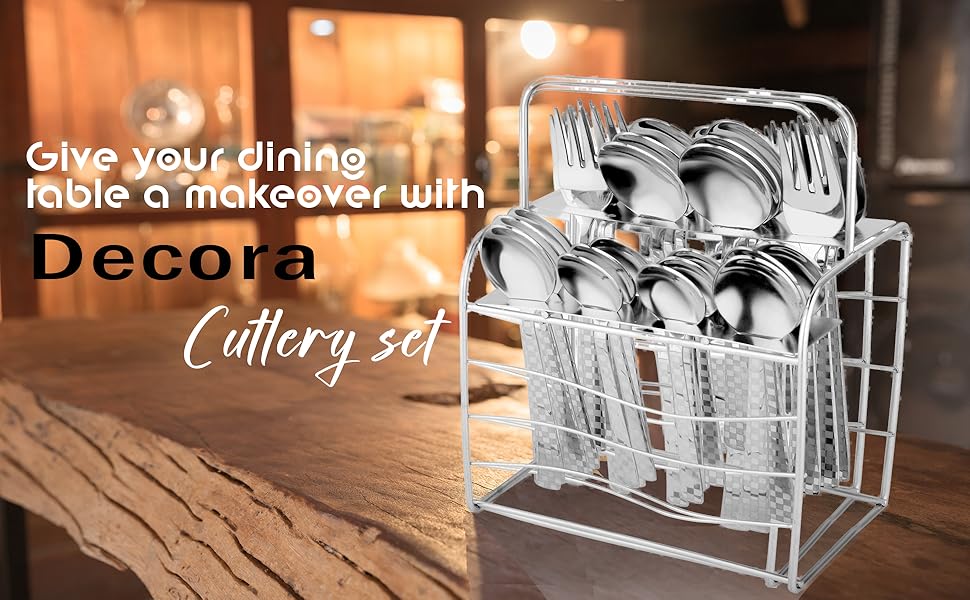 25-Piece Decora Stainless Steel Cutlery Set with Stand | Spoons & Forks for Dining Table, Silver