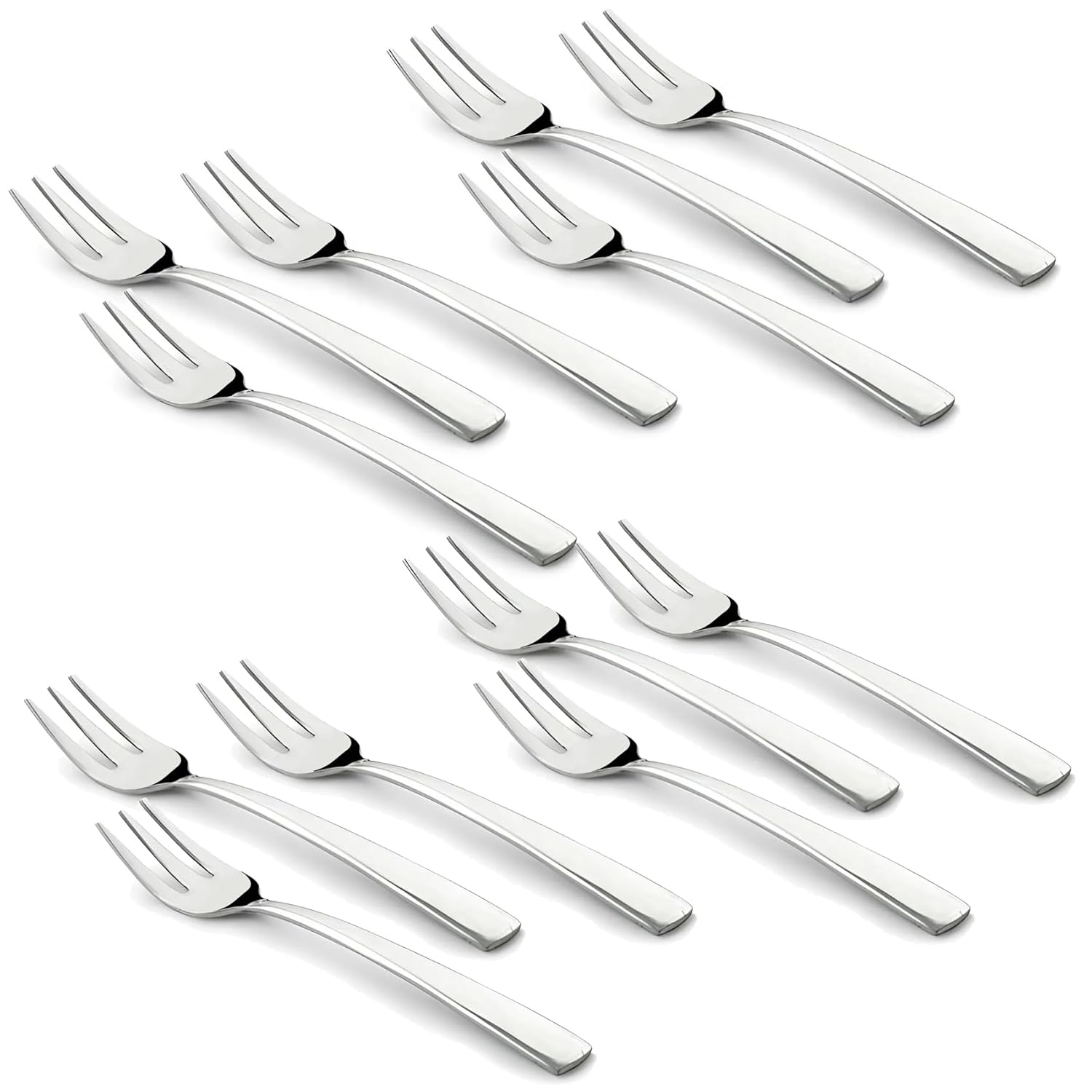 Enhance your dining experience with this set of 12 stainless steel fruit forks, ideal for home and kitchen use. Designed in a small size, they are perfect for kids and adults alike to enjoy snacks, fruits, and desserts with ease and hygiene. The durable silver finish ensures long-lasting use while adding a sleek touch to your tableware. Easy to clean and reusable, these fruit picks combine functionality with style for everyday convenience.