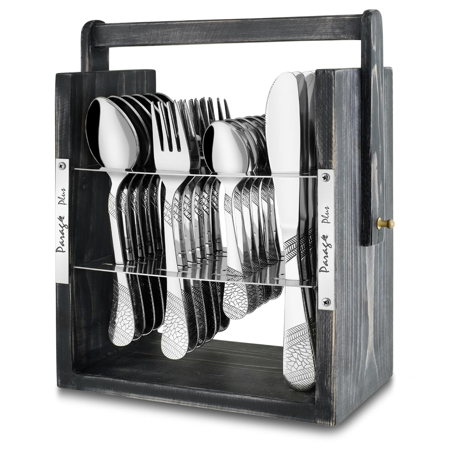 25 Pieces Stainless Steel Imperial Cutlery Set with Wooden Hanging Stand – Includes 6 Tea Spoons, 6 Table Spoons, 6 Table Forks, 6 Knives, Stylish Dining Set