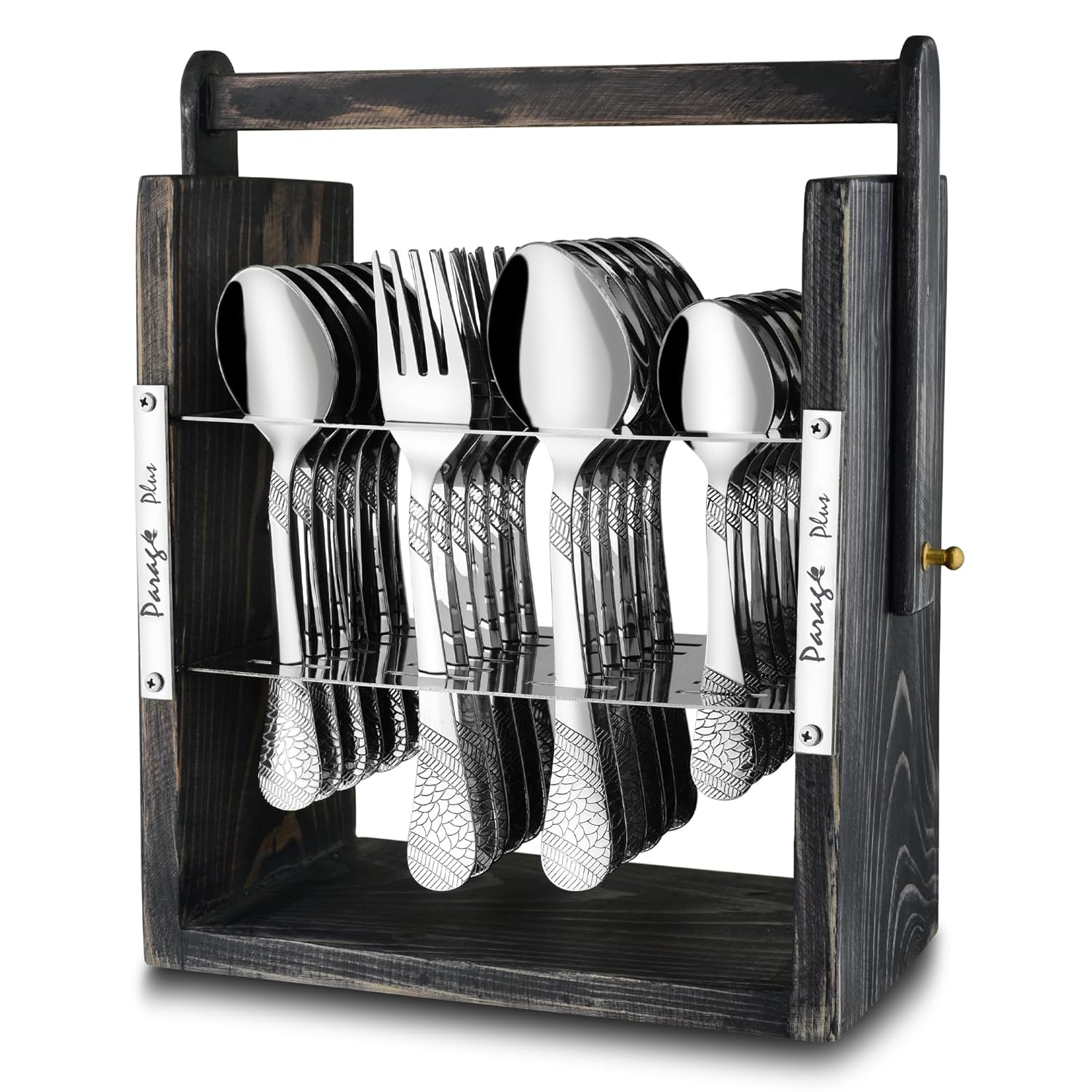 25 Pieces Stainless Steel Imperial Cutlery Set with Wooden Hanging Stand – Includes 6 Tea Spoons, 6 Table Spoons, 6 Table Forks, 6 Dinner Spoons, Stylish Dining Set