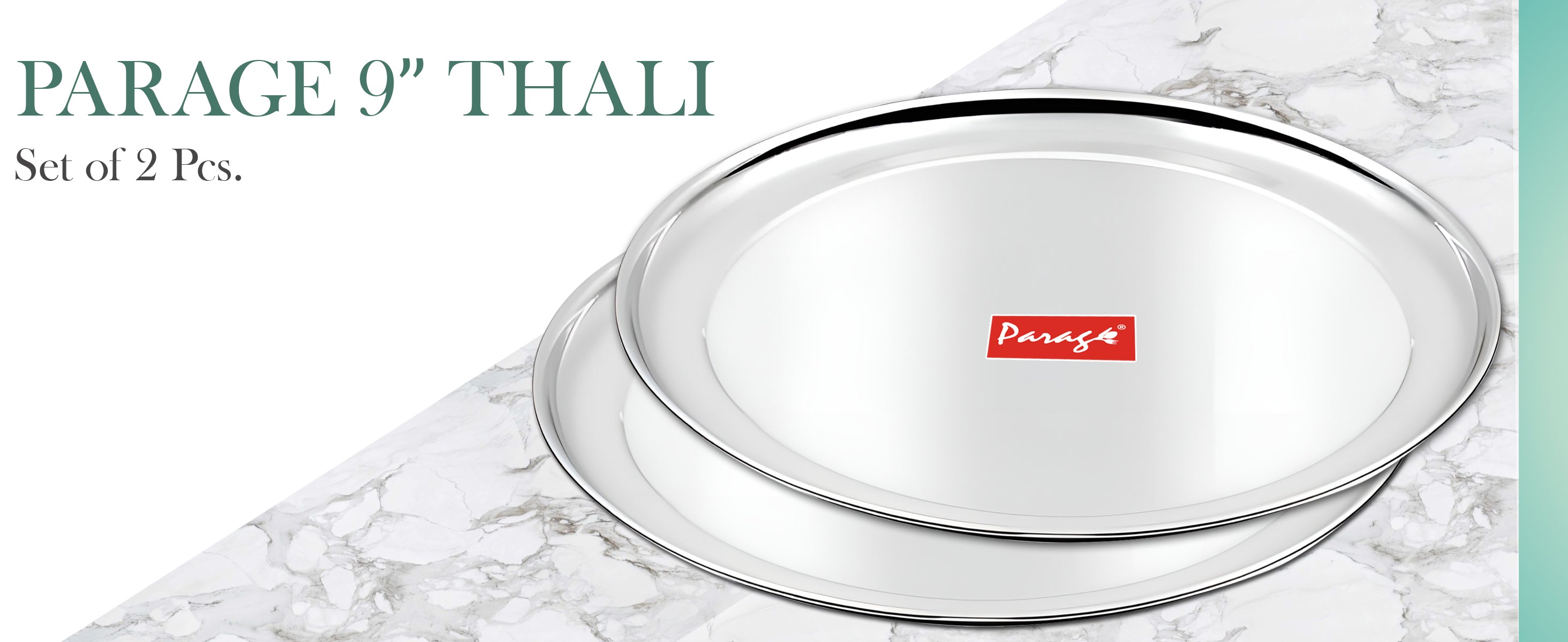 2pc Stainless Steel Raj Bhog Plate | 9in Heavy Gauge | Silver