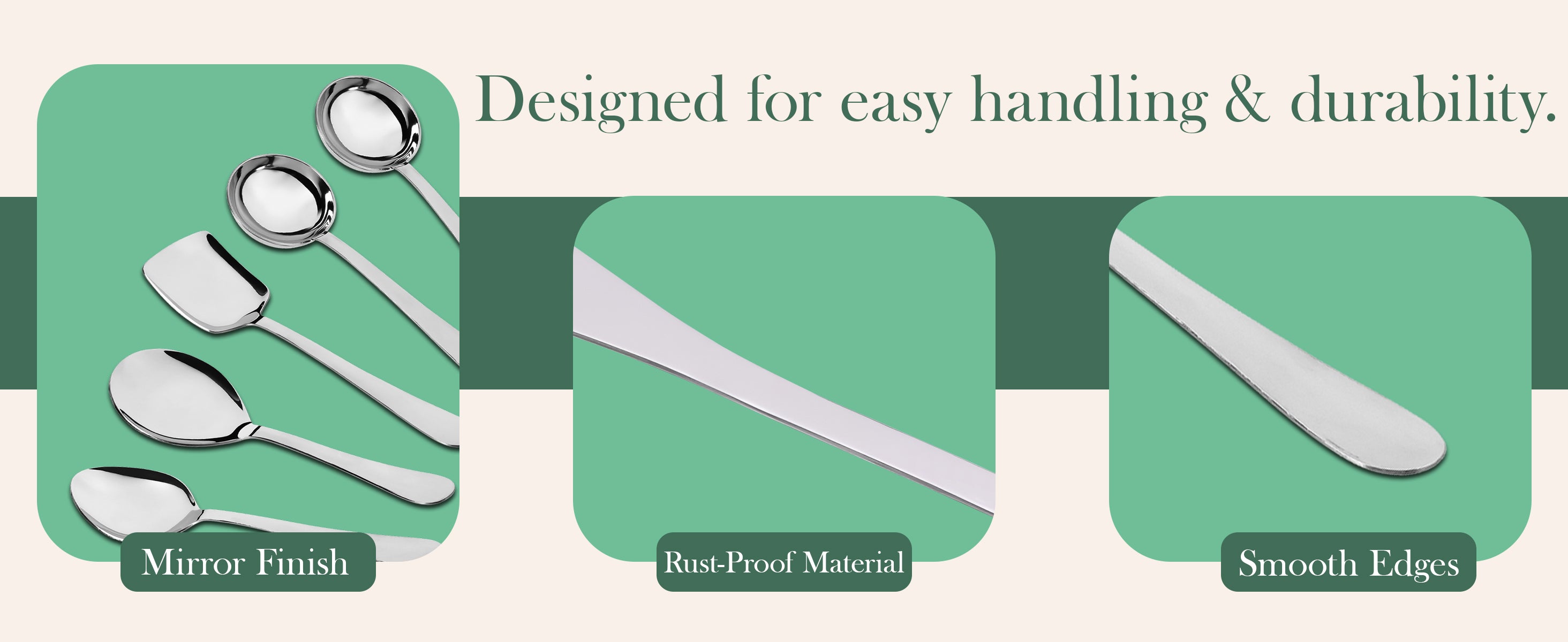 - VERSATILTY: This 3-piece serving spoon set typically includes a variety of spoon sizes and shapes, such as soup ladle, solid spoons, and serving spoons, making them versatile for various cooking tasks, stirring, serving, and mixing.