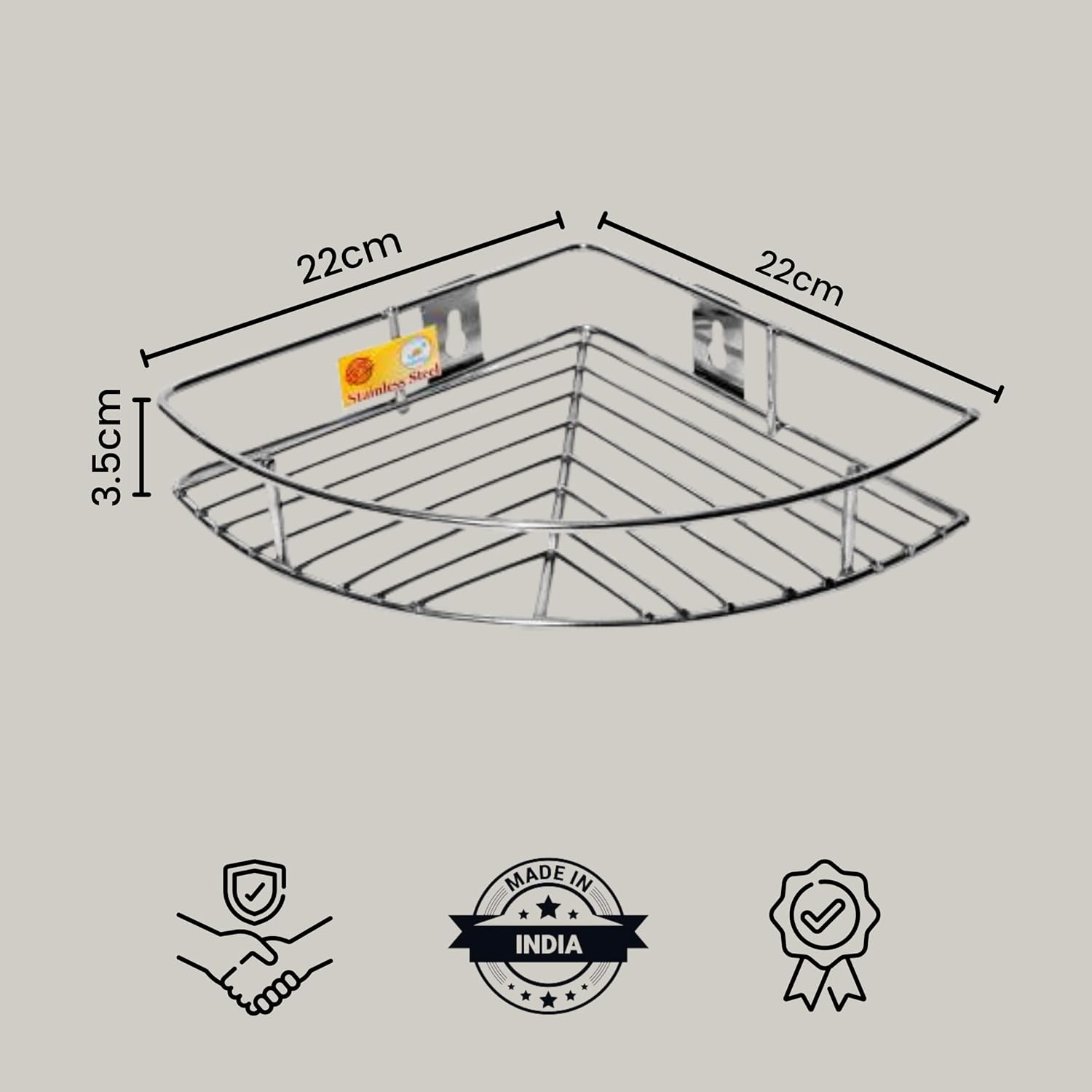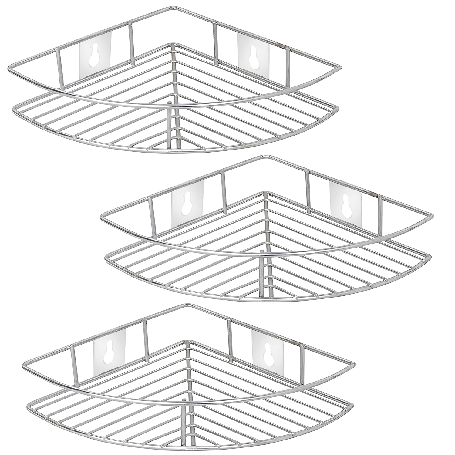 3 Pcs Stainless Steel Multipurpose Corner Shelf Rack – Organizer for Kitchen & Bathroom, Wall-Mounted, 23×23×5 cm, Chrome Finish