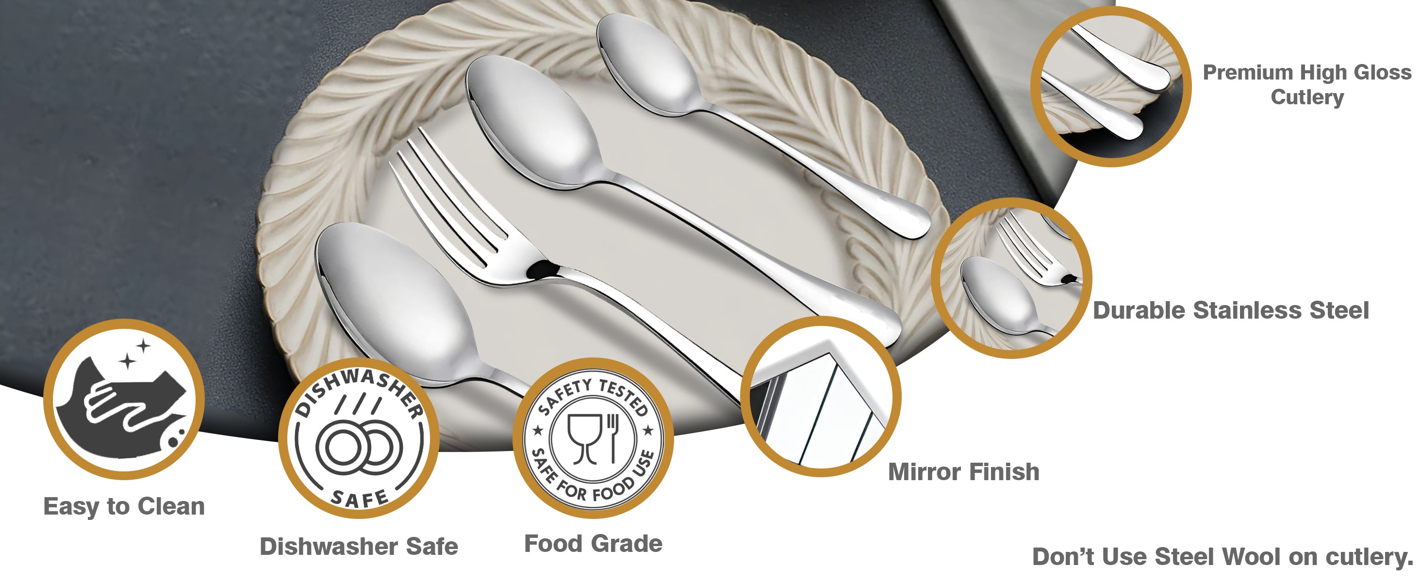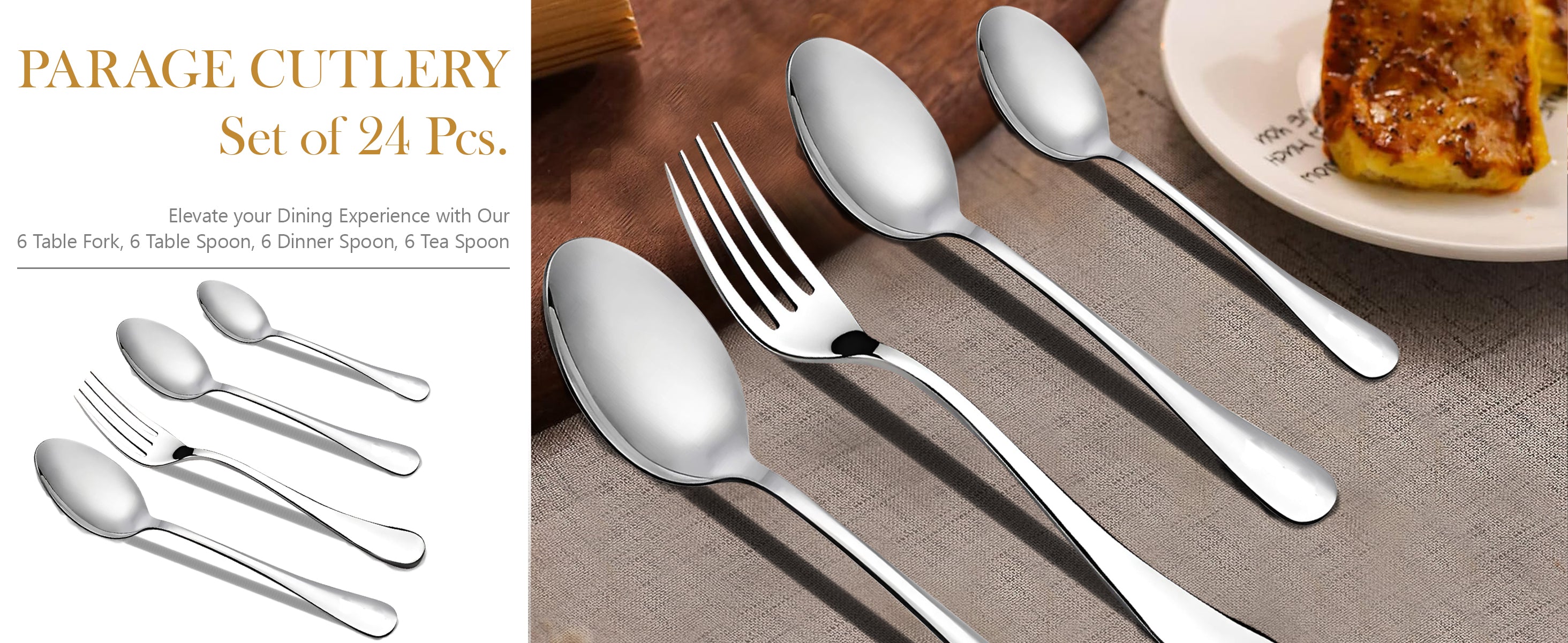This 24-piece stainless steel cutlery set offers a complete dining solution with 6 table spoons, 6 forks, 6 tea spoons, and 6 dinner spoons. Crafted for durability and a sleek silver finish, it combines functionality with refined aesthetics, enhancing everyday meals and special occasions alike. Designed to resist rust and maintain shine, this set ensures long-lasting performance and easy maintenance in any home or kitchen setting.