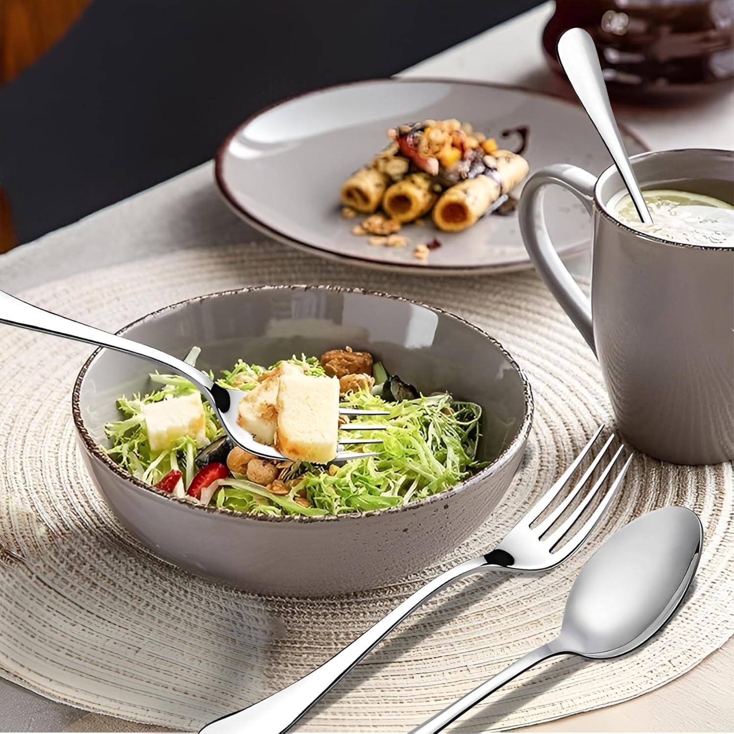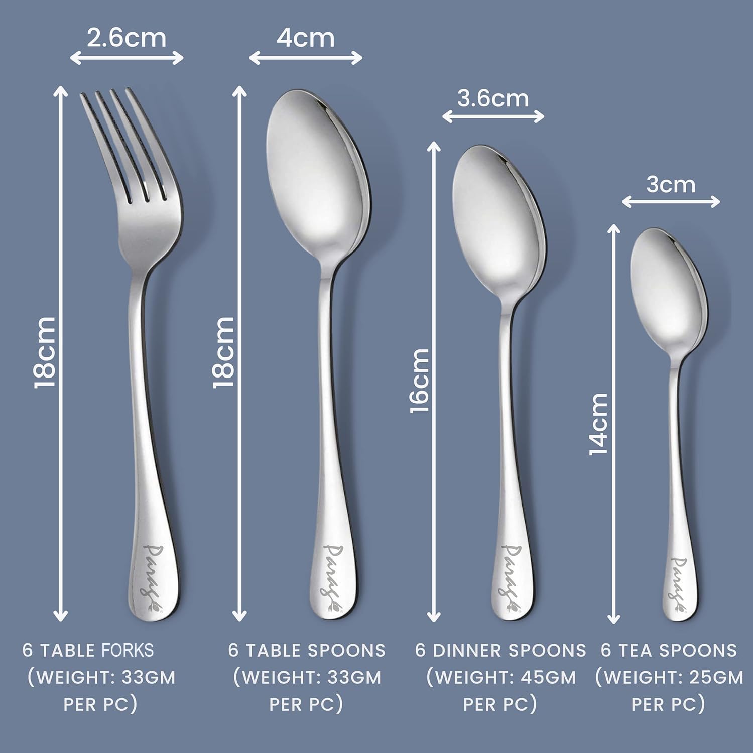 24 Pieces Stainless Steel Cutlery Set for Home & Kitchen – Includes 6 Table Spoons, 6 Forks, 6 Tea Spoons, 6 Dinner Spoons, Luxury Dining Tableware, Silver Finish