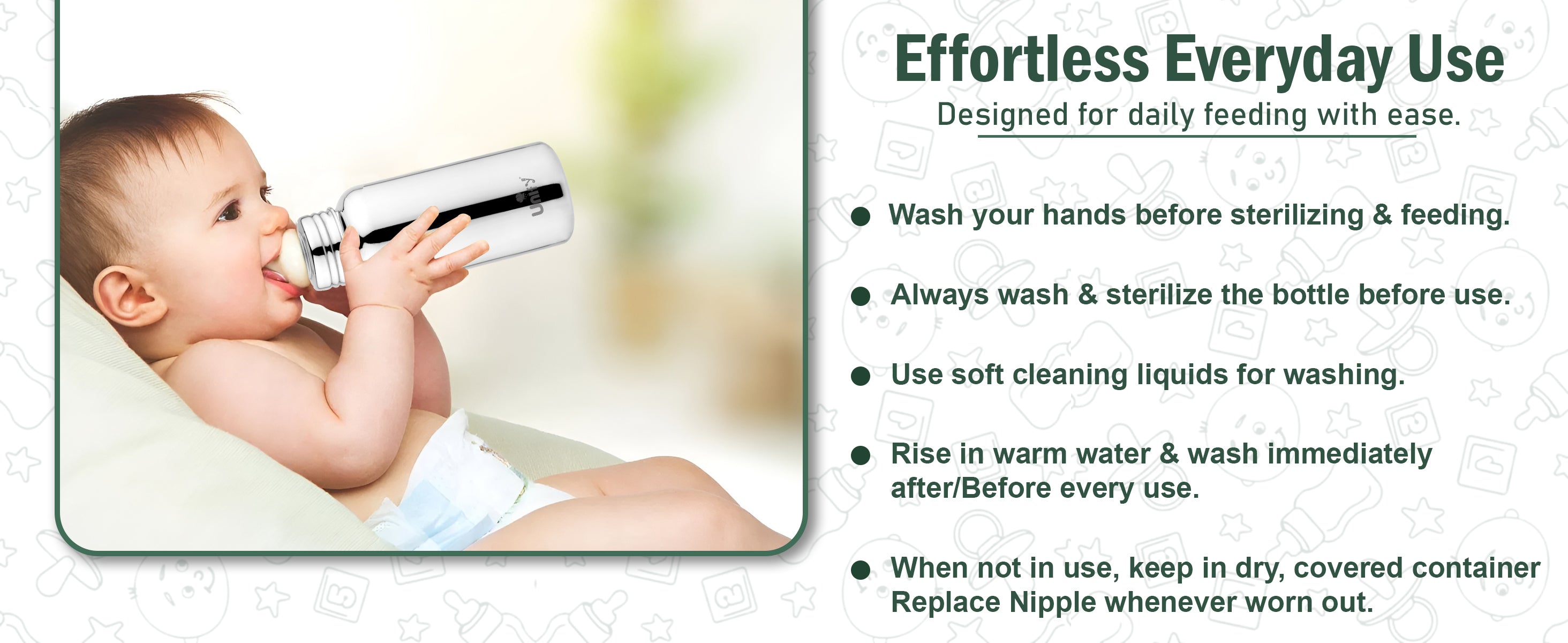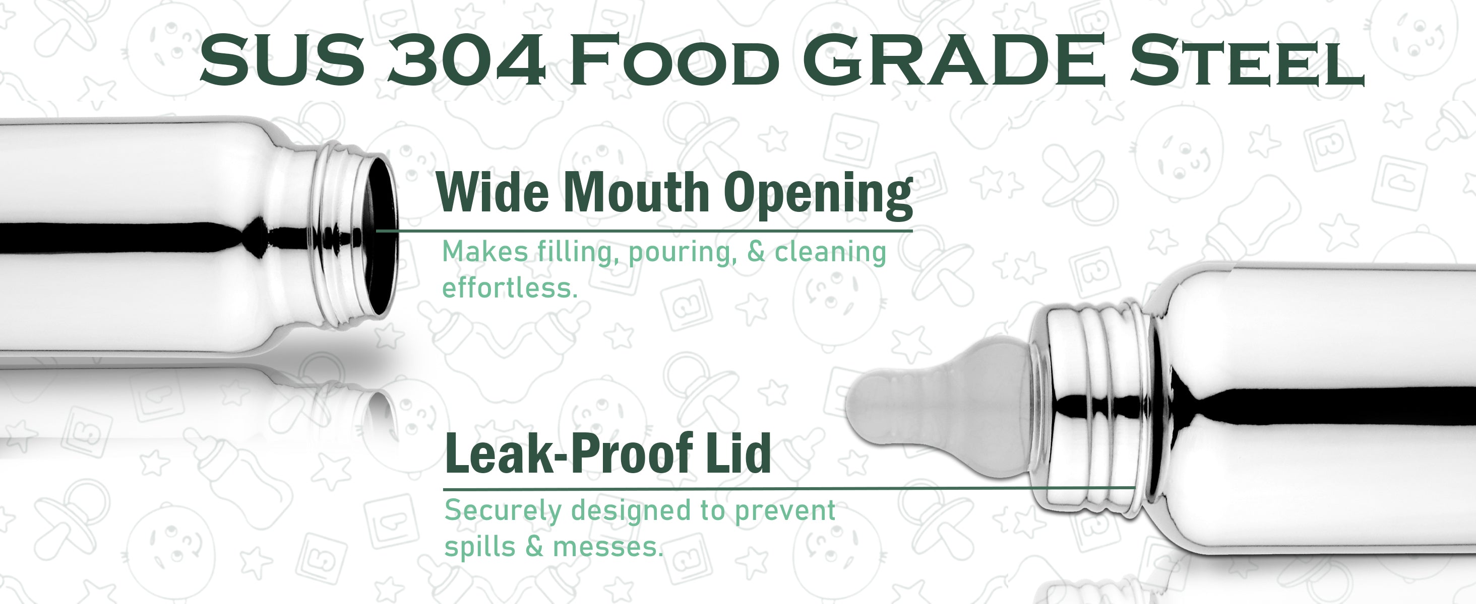 Crafted from durable stainless steel, this 250ml baby feeding bottle offers a safe, plastic-free alternative for feeding. BPA-free and designed with an anti-colic system, it helps reduce discomfort by minimizing air intake during feeding. Its lightweight and robust construction ensures long-lasting use and easy cleaning, providing a hygienic and reliable feeding option for your baby. Ideal for parents seeking a safe, eco-friendly bottle without compromising on safety or performance.