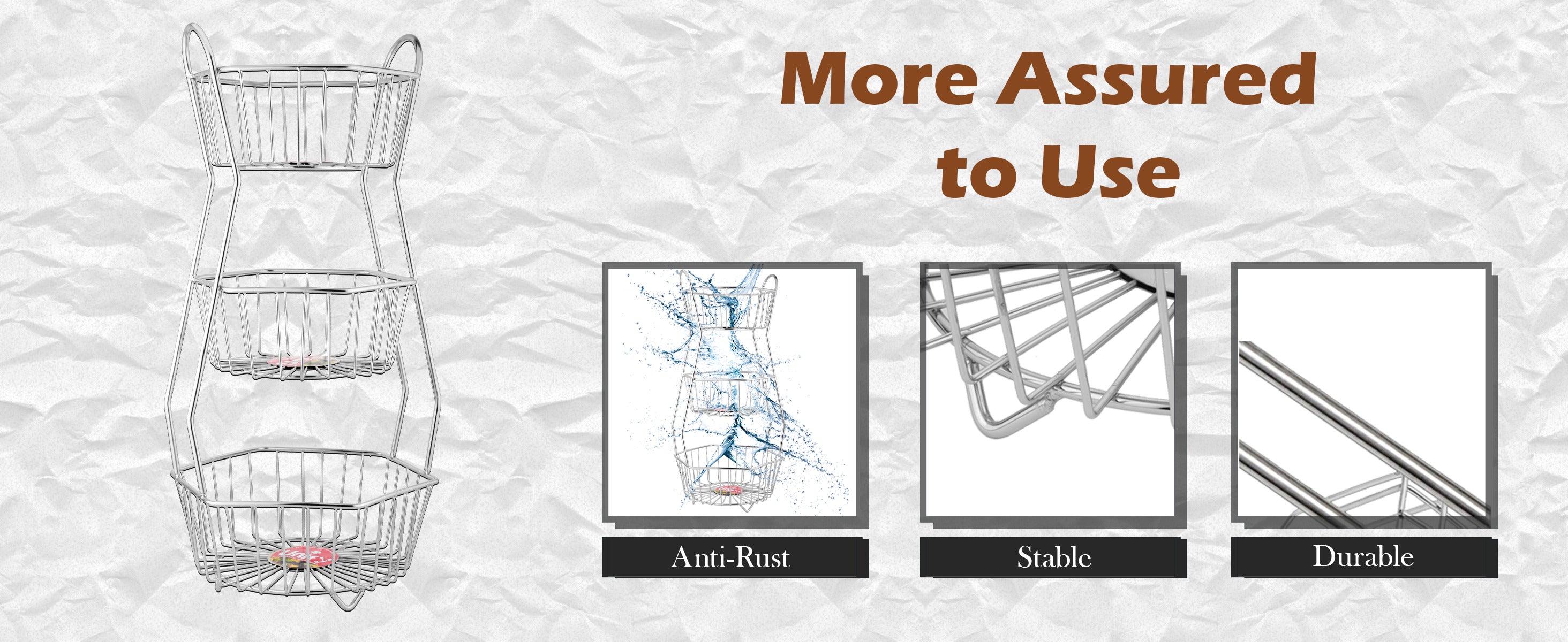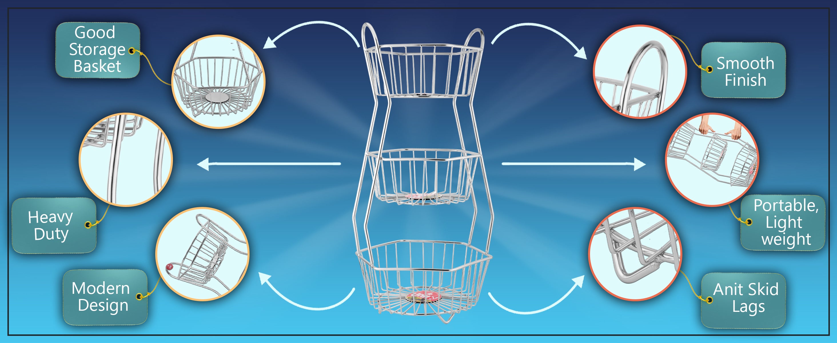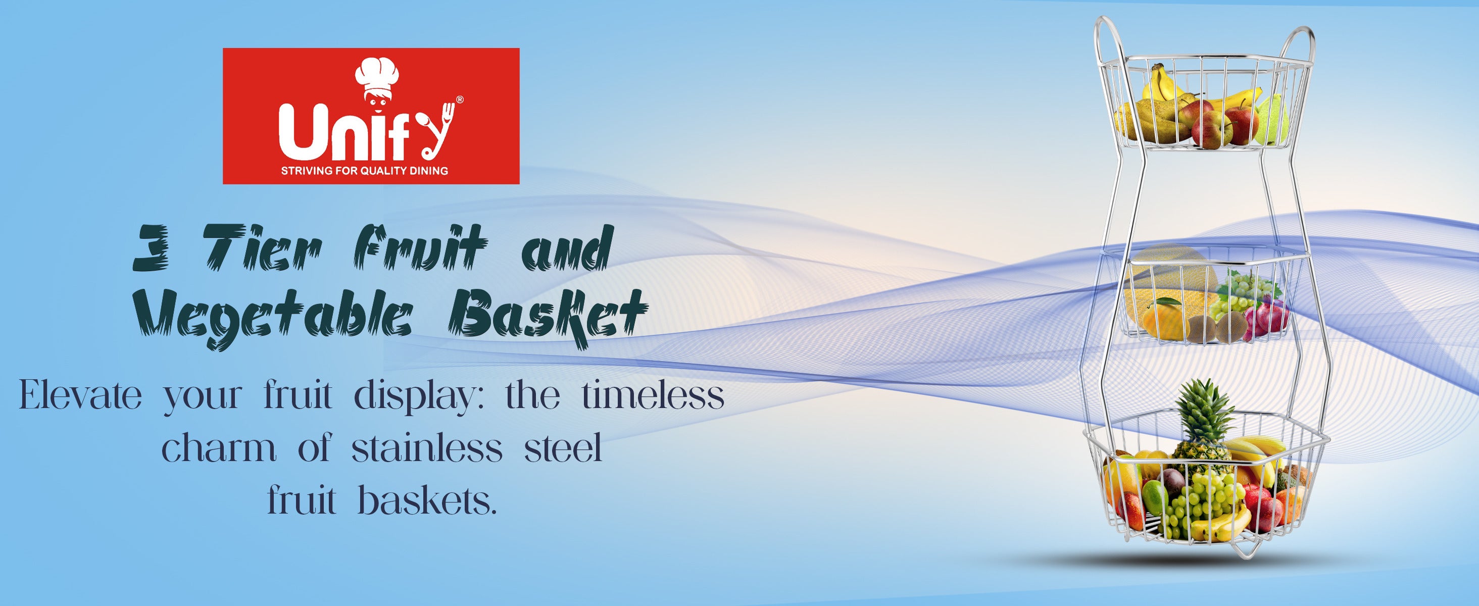 The 3-Tier Stainless Steel Fruit Basket features a hexagonal design that maximizes space while offering an elegant modern look for your kitchen or dining table. Crafted from durable stainless steel, it resists rust and ensures long-lasting use. This multi-level stand allows you to organize fruits efficiently, keeping them accessible and fresh. Its sturdy construction supports varied fruit sizes, making it an essential and practical addition to any culinary space.