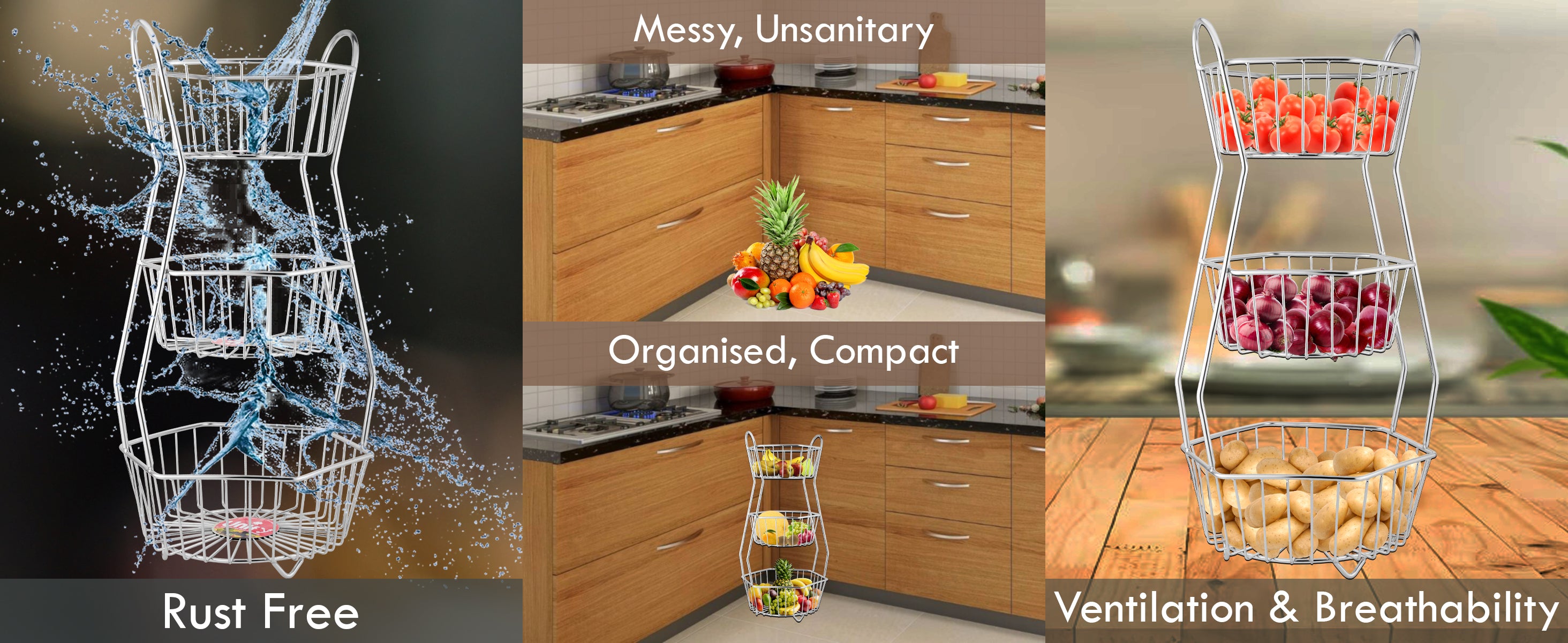 3-Tier Stainless Steel Fruit Basket – Hexagonal, Kitchen & Dining Table Stand