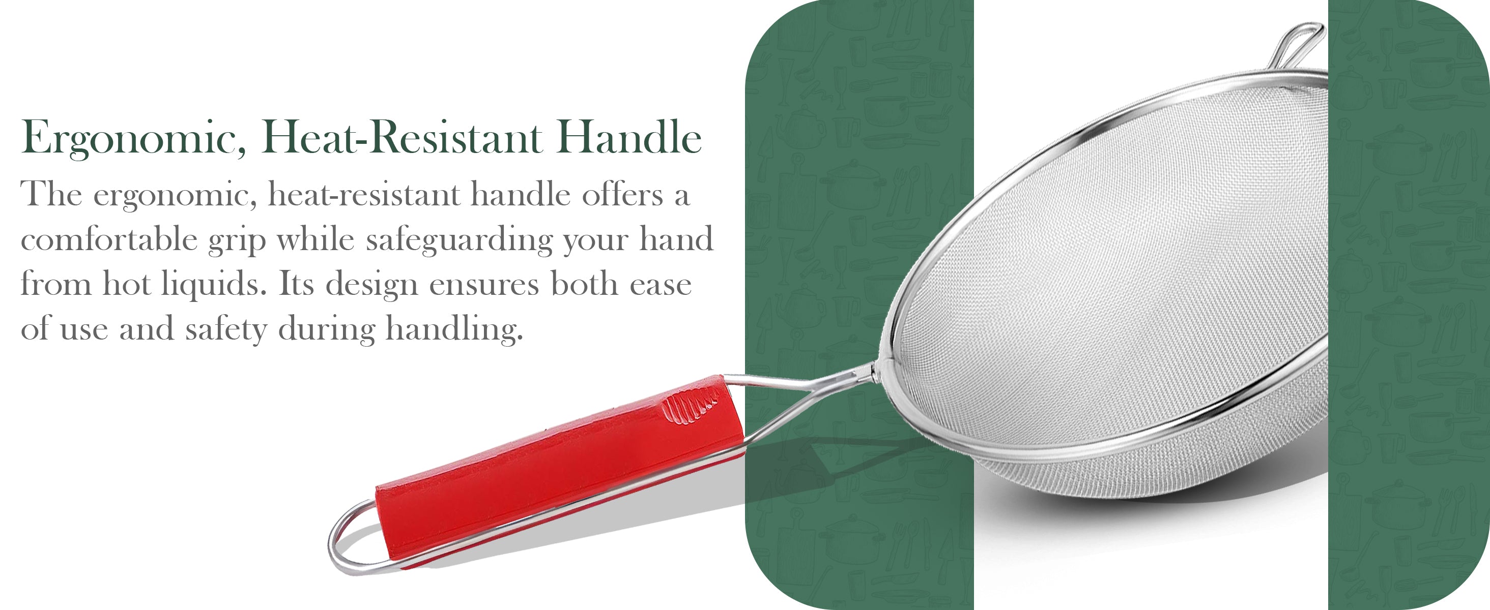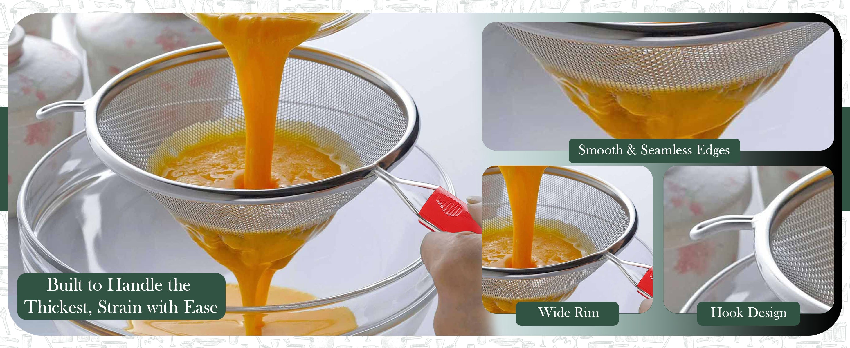 - FINE MESH CHALNI: Features a fine mesh for effectively straining soups, juices, rice water, and other liquids, capturing even the smallest particles.