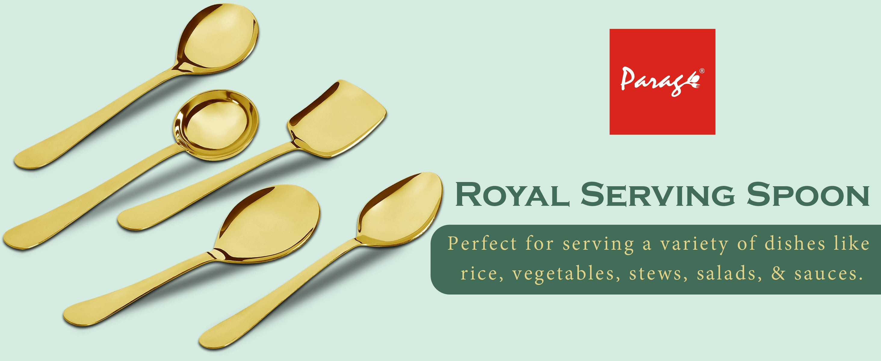 5 Pcs Stainless Steel Gold Serving Spoon Set – Heavy Gauge Kitchen Use